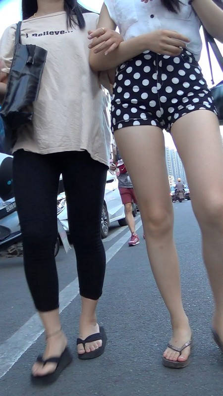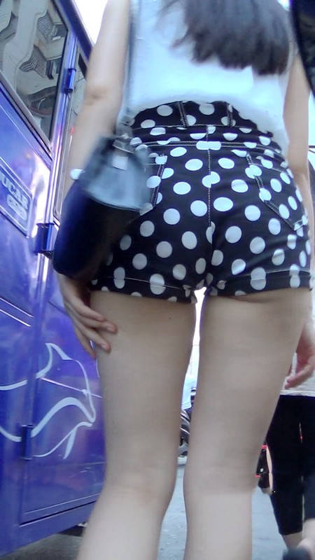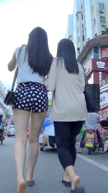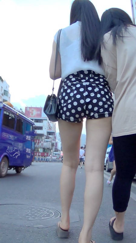 【编号946】街拍性感斑点短裤黑长直妹妹
