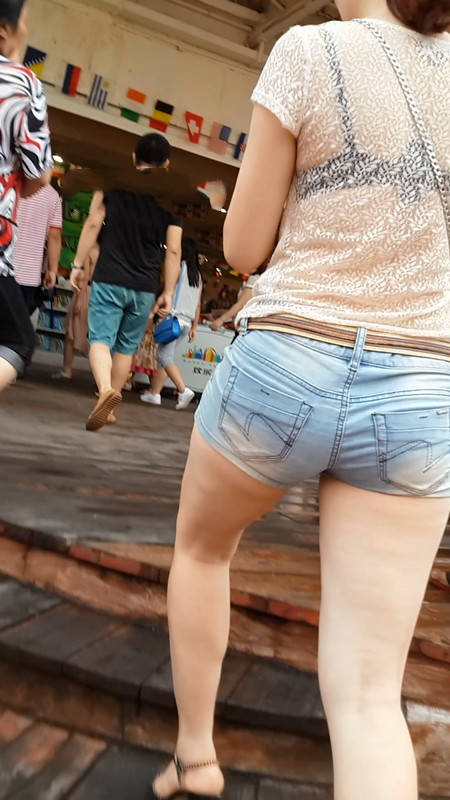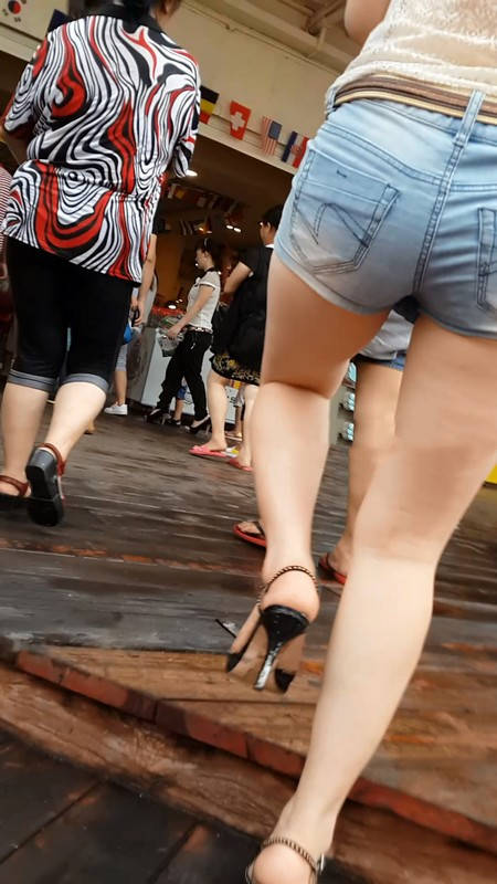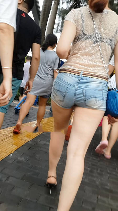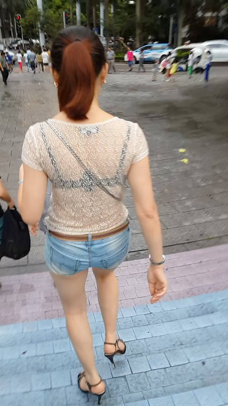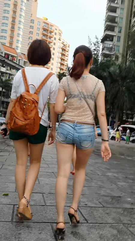 【编号972】街拍透明上衣紧身热裤苗条性感女孩