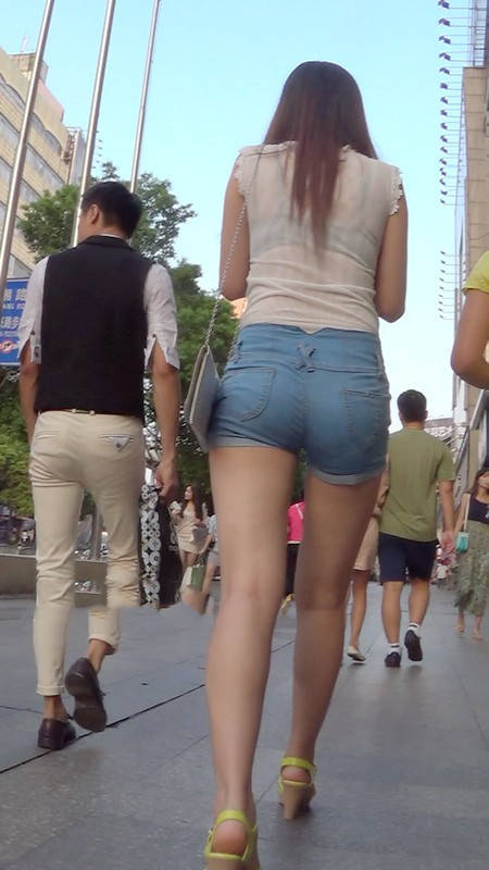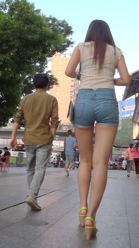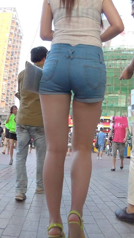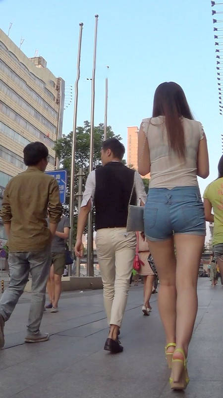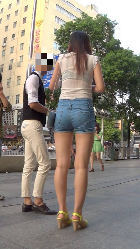 【编号982】街拍牛仔热裤美女上衣有点透