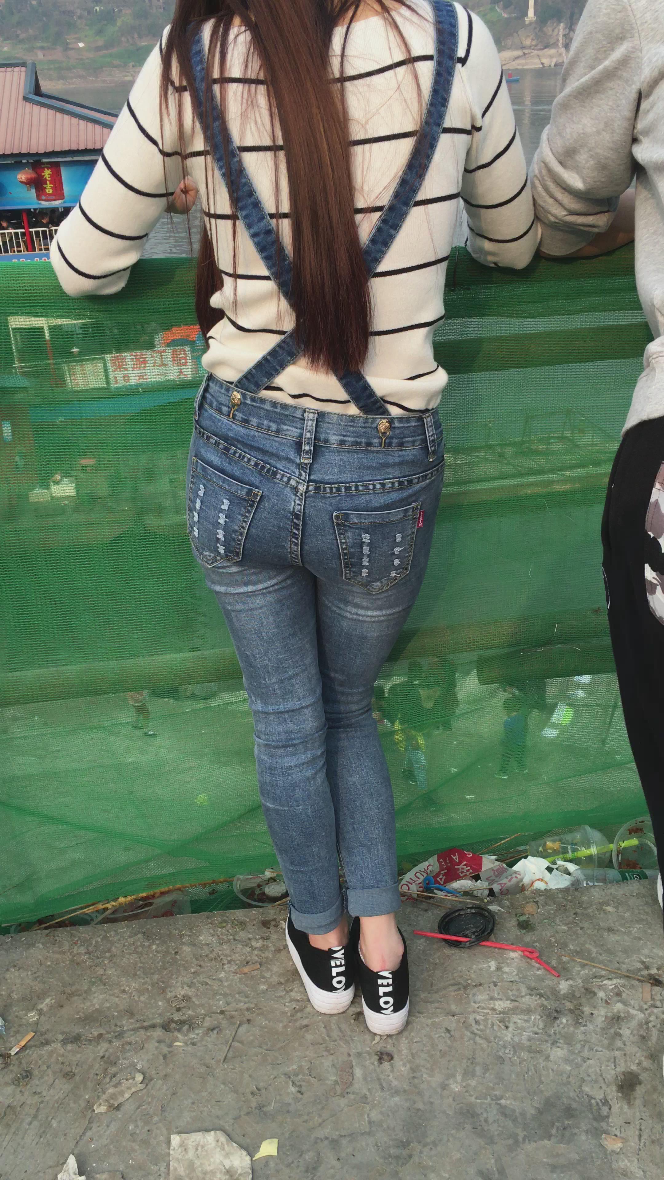 4K 吊带紧身牛仔裤青春美女 编号3106