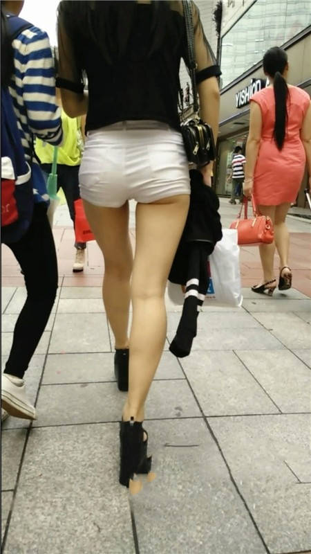 【编号1062】街拍白色紧身热裤长腿美女露月牙