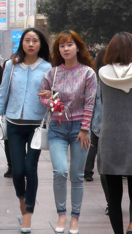 【编号1096】街拍清纯牛仔裤小妹与闺蜜逛街