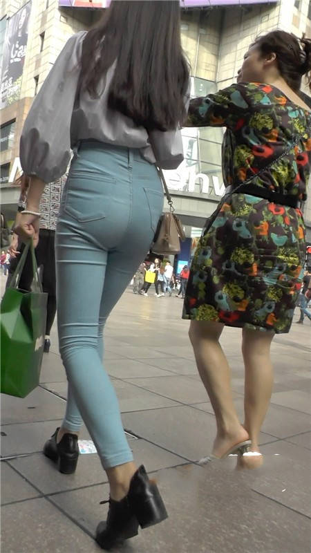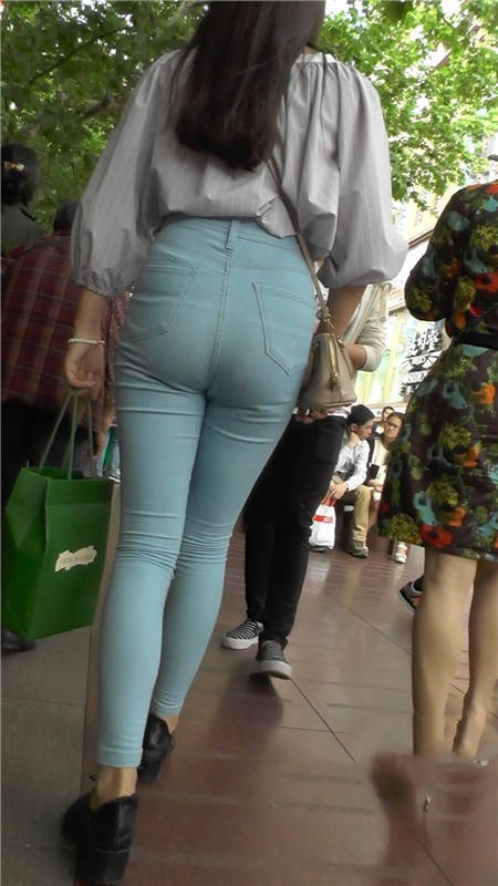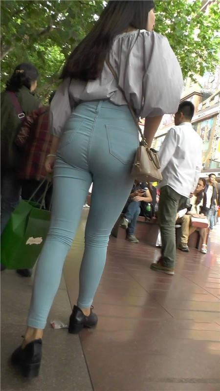 【编号1109】街拍浅蓝紧身牛仔裤长腿翘臀小妹