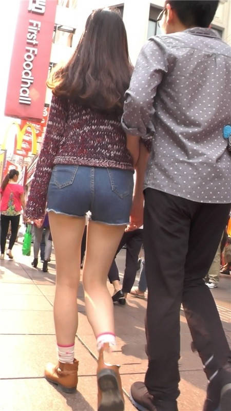 【编号1128】街拍紧身牛仔短裤小妹与男友逛街