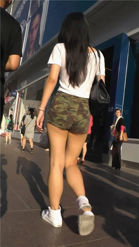 【编号1150】街拍迷彩短裤大屁股月牙美女