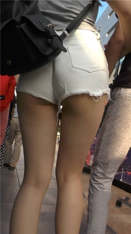 【编号1151】街拍白色紧身短裤长腿月牙妹一路自拍