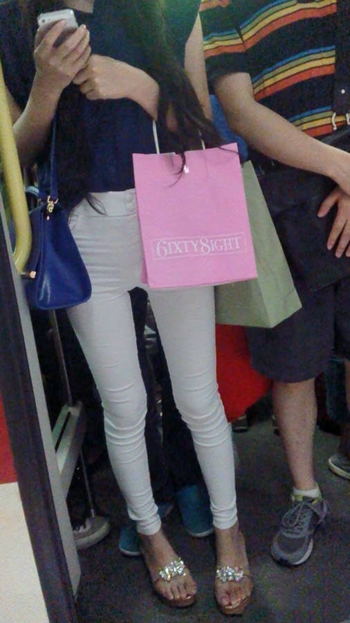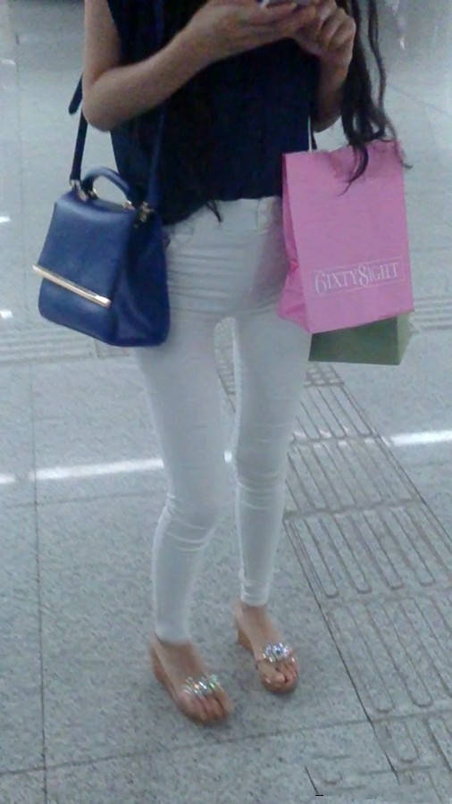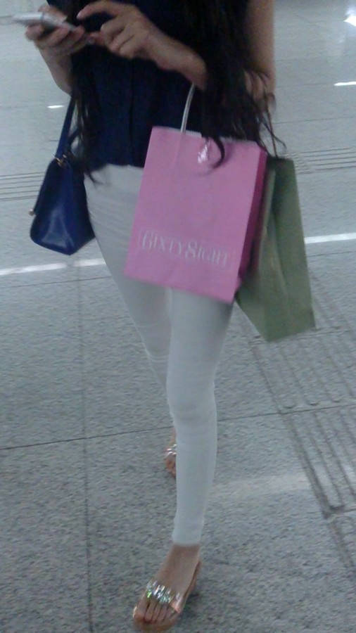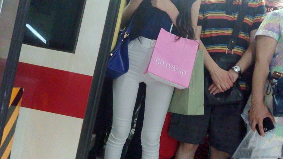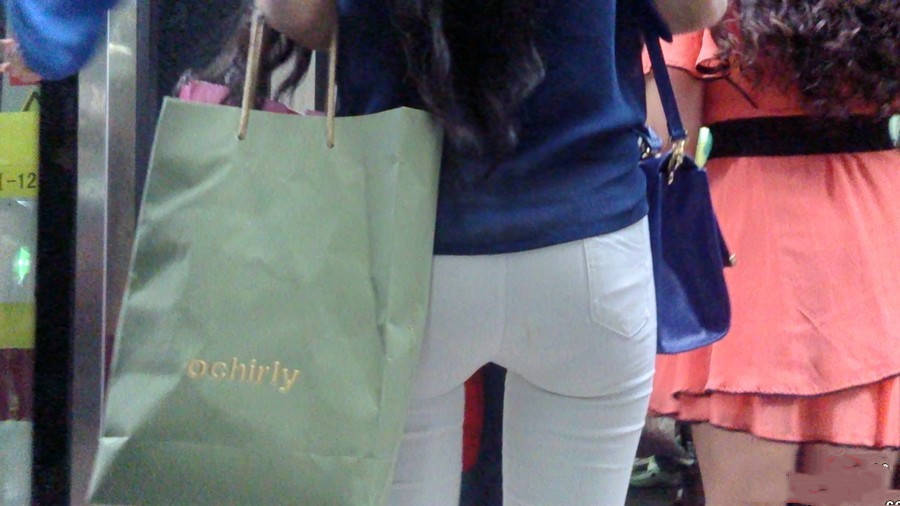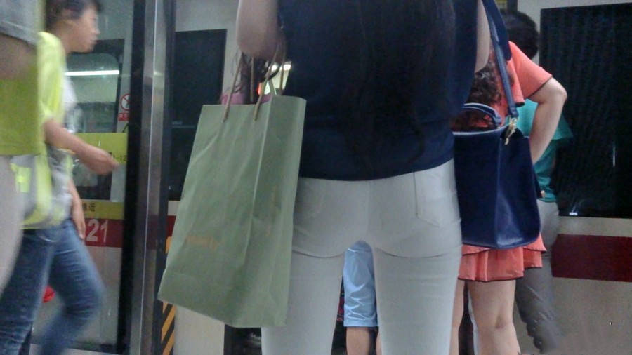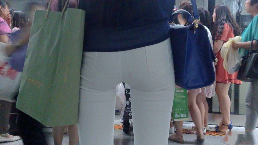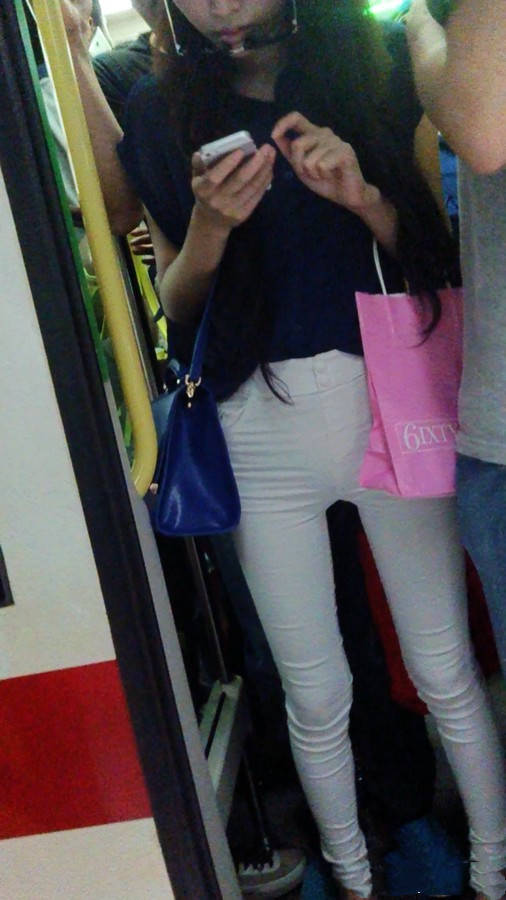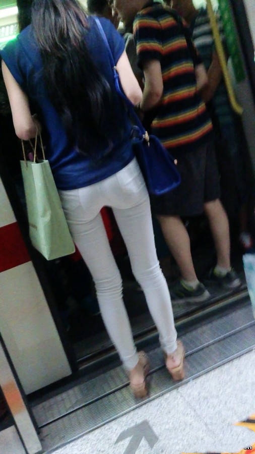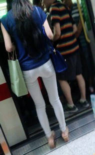【编号575】搭乘地铁的紧身白裤苗条MM