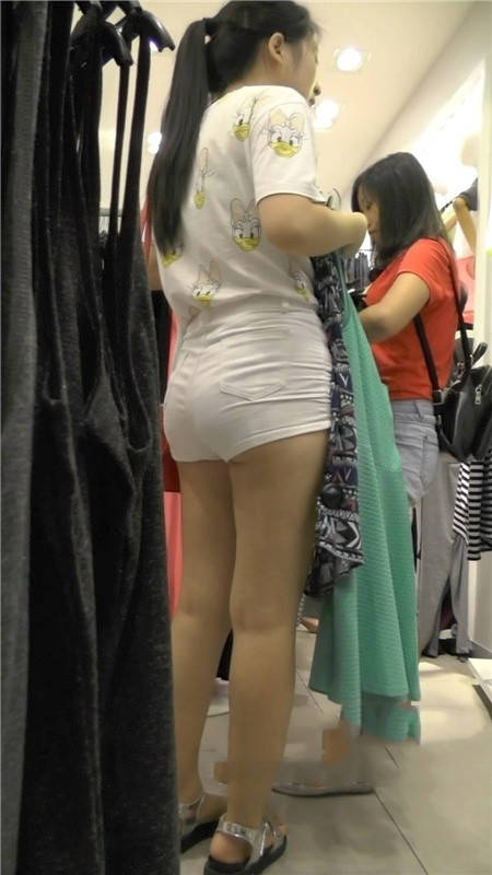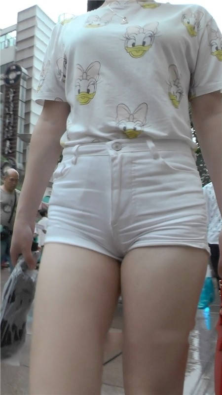 【编号1186】街拍白色紧身短裤肥臀女学生