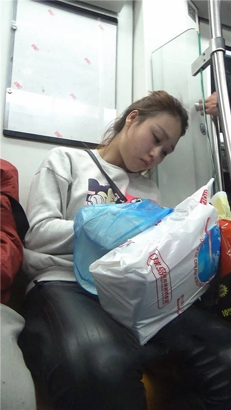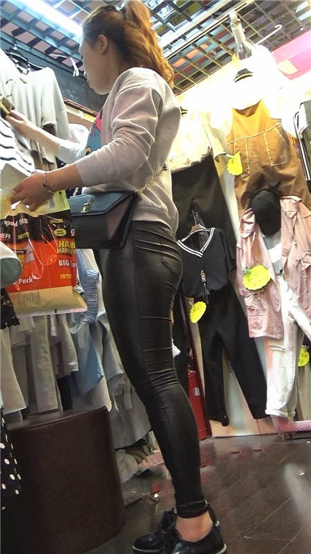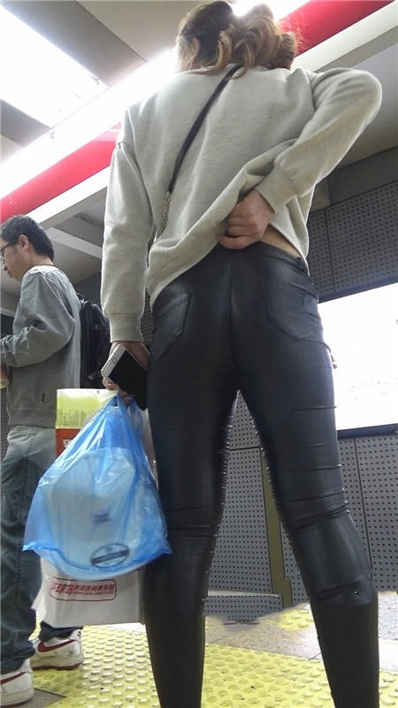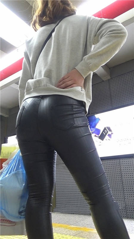 【编号1210】街拍20分钟黑皮裤女孩一路跟拍上地铁