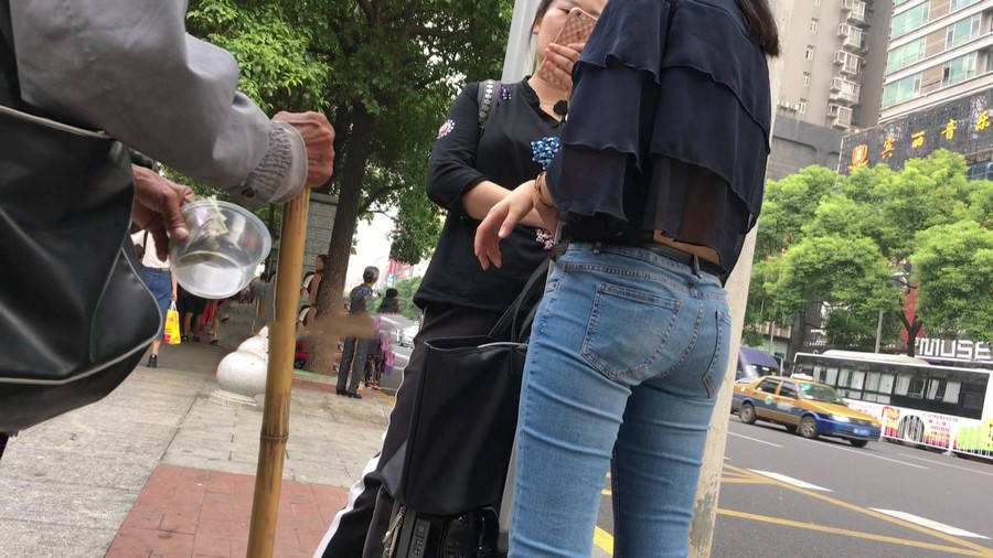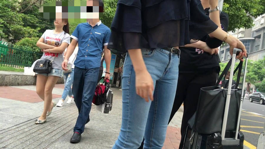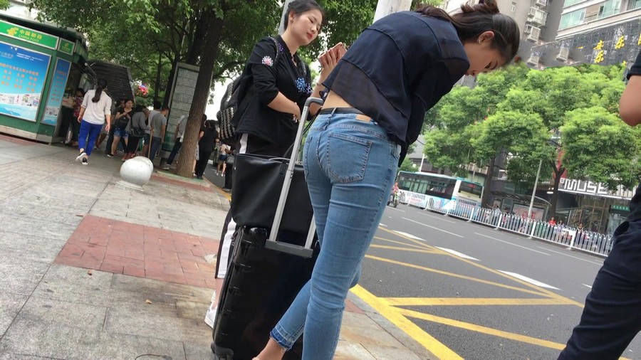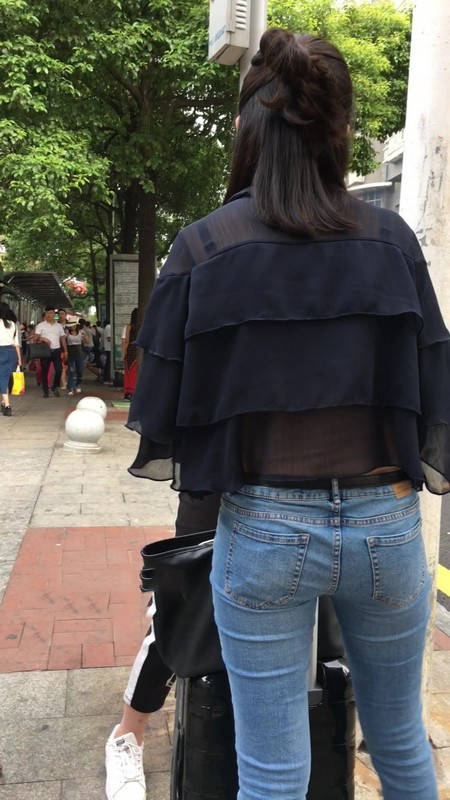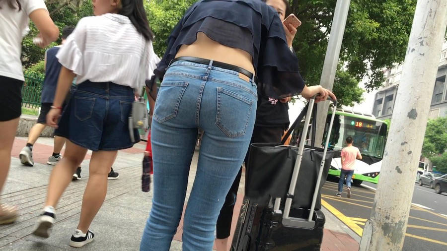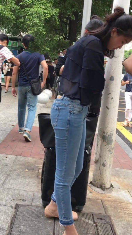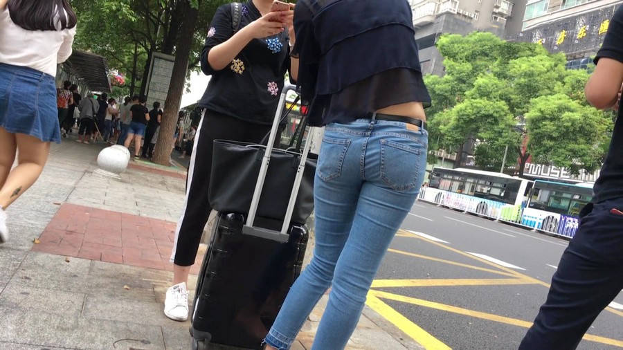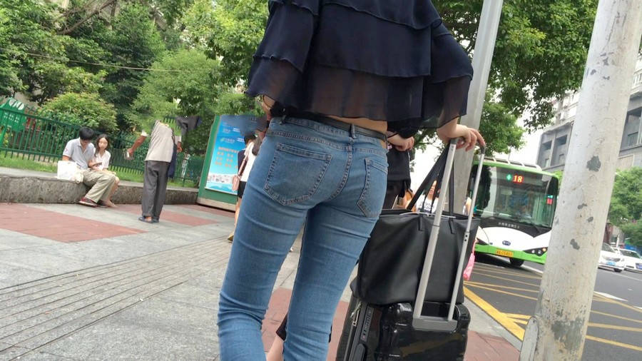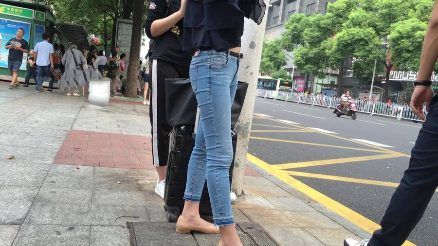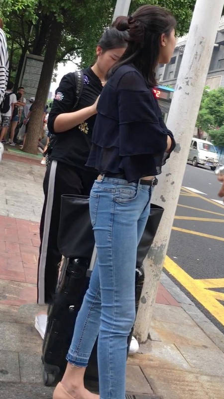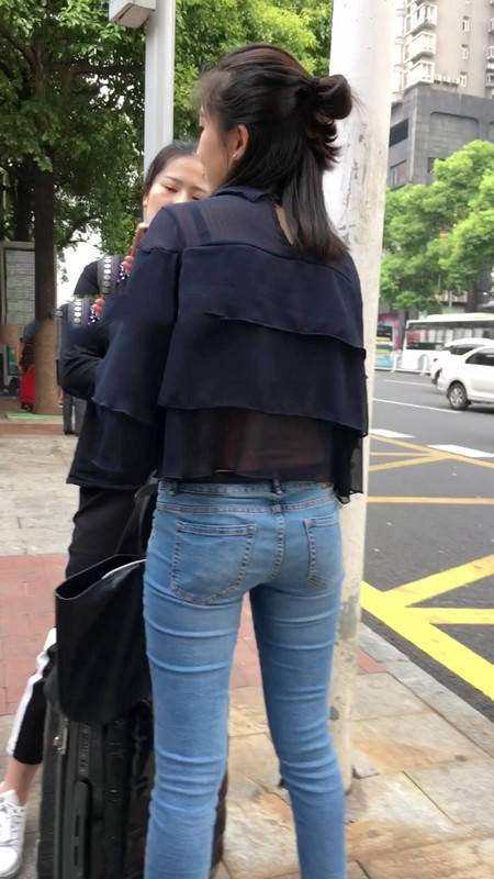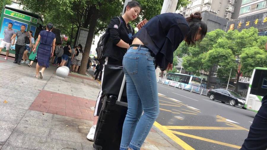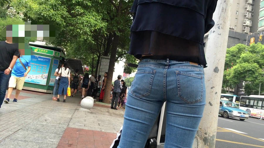 【编号1211】街拍公交站台的牛仔裤少女
