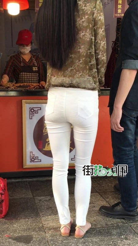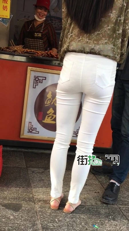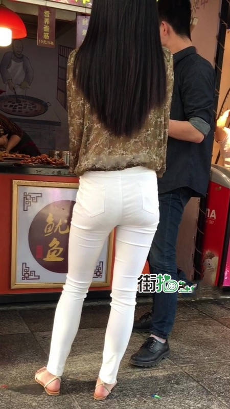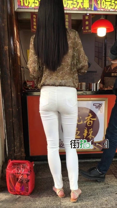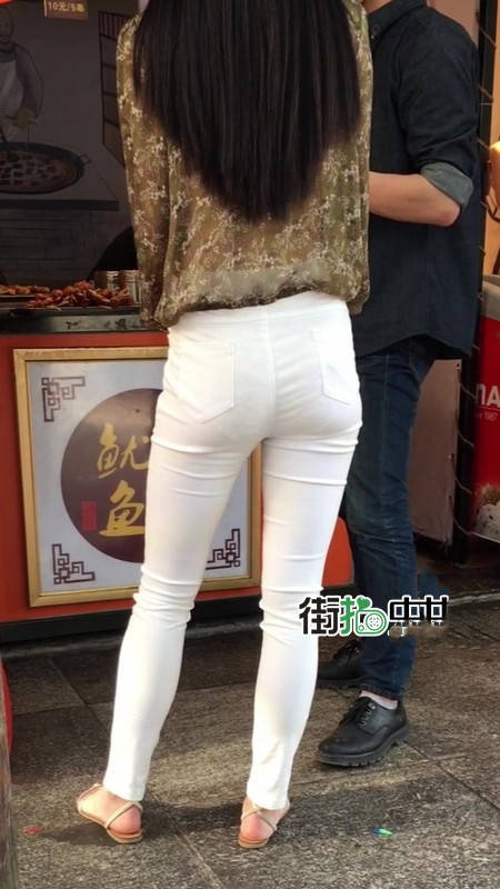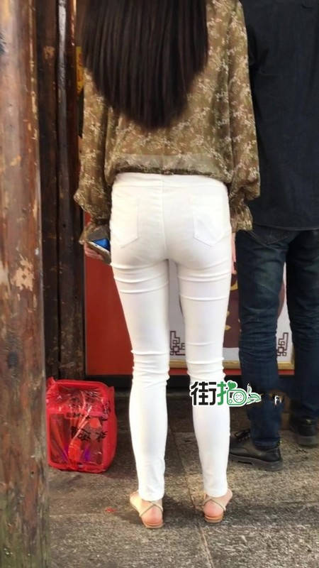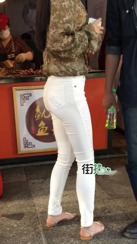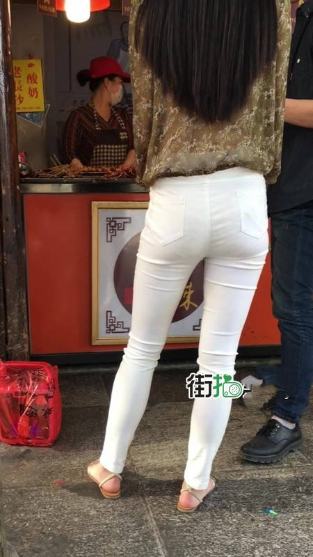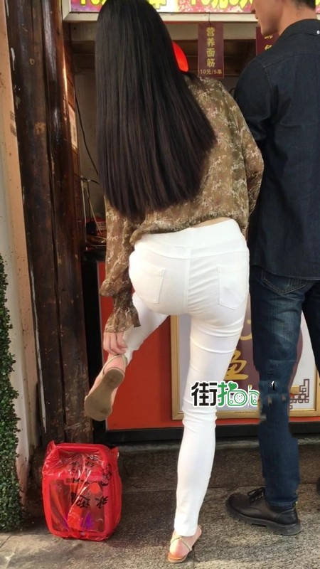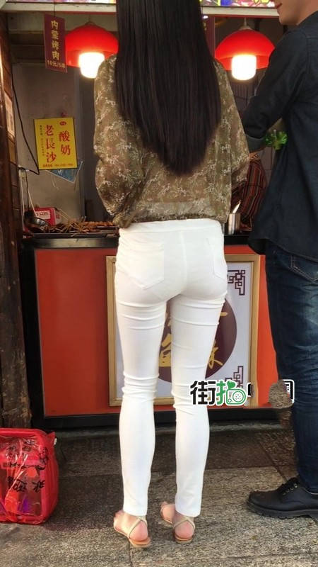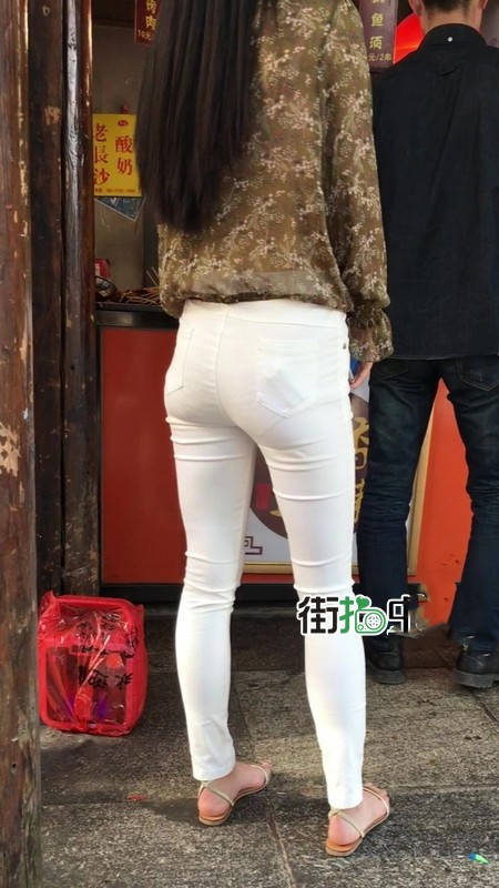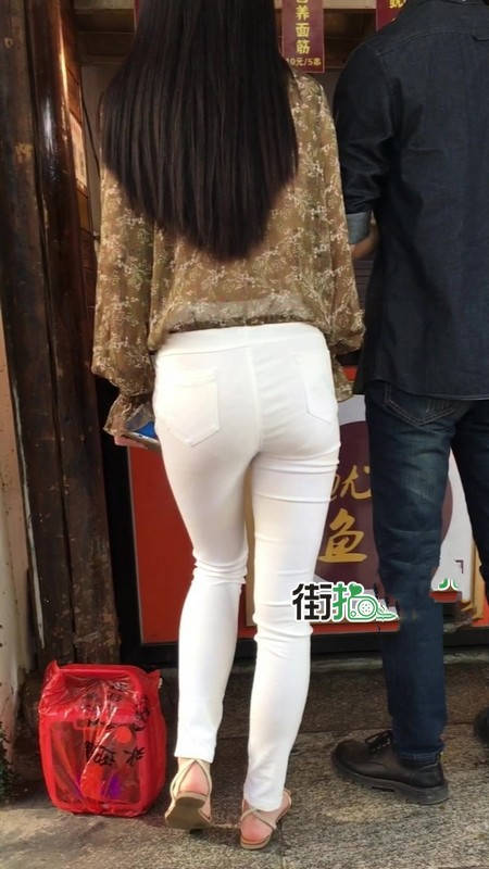 【编号1216】街拍白色紧身裤长腿翘臀苗条女友