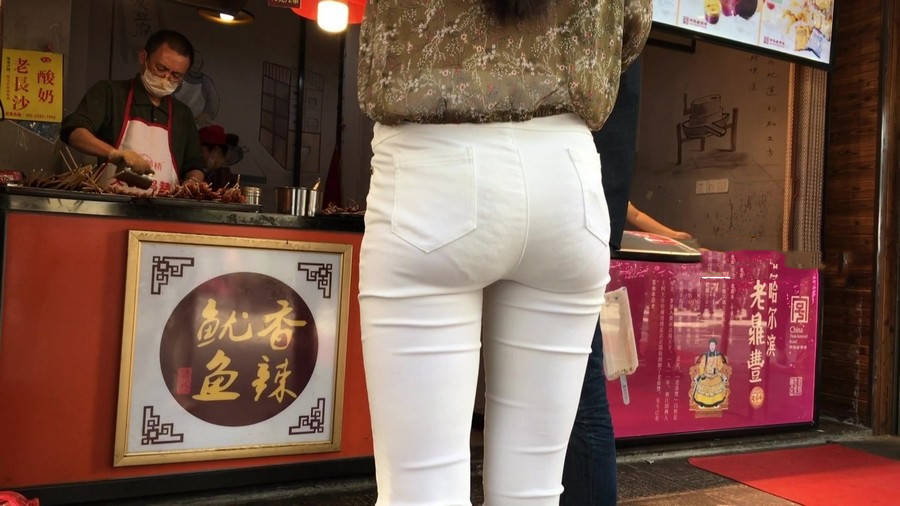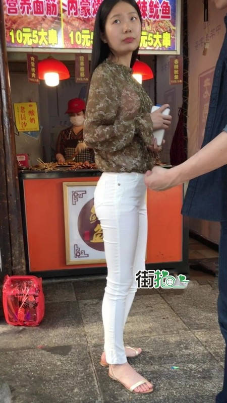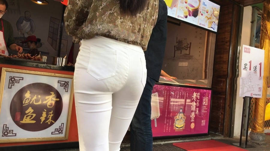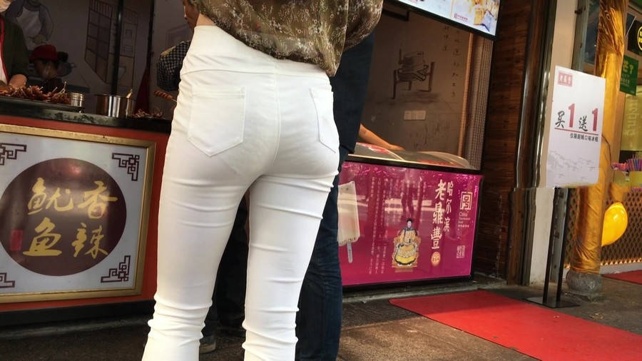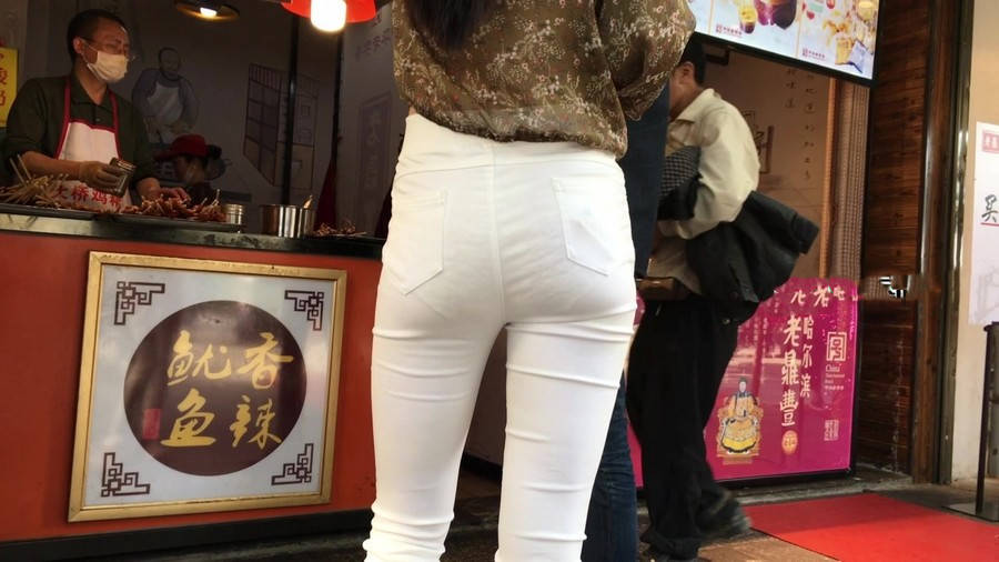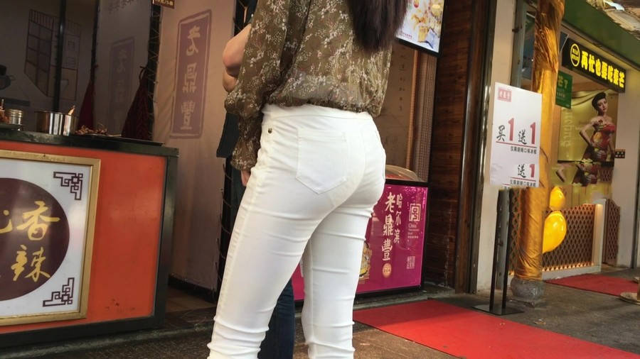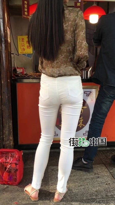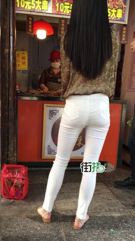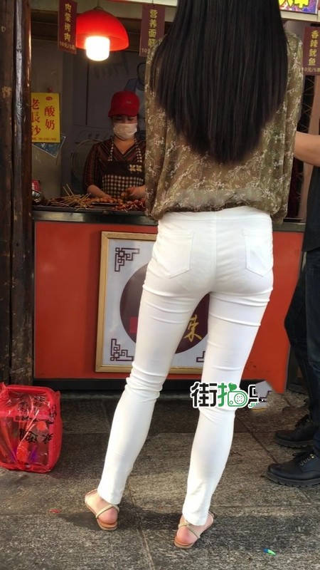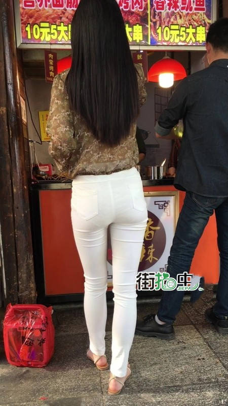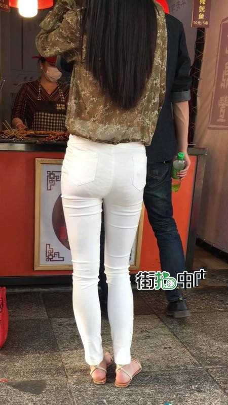【编号1216】街拍白色紧身裤长腿翘臀苗条女友