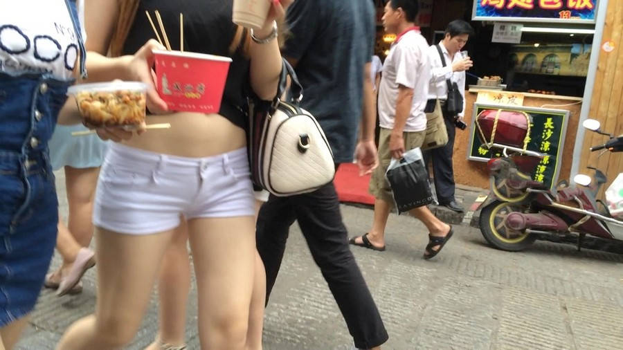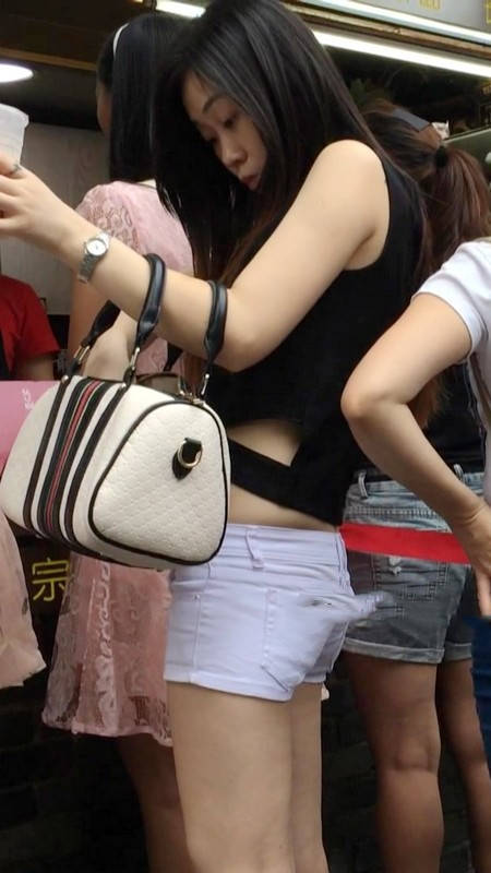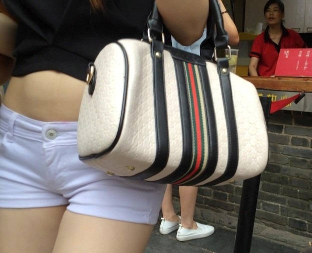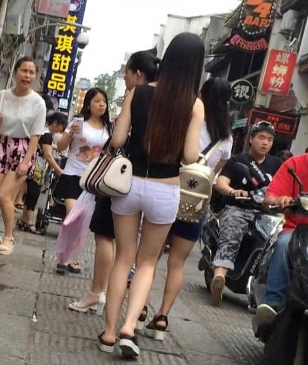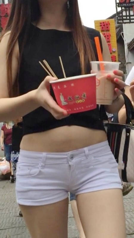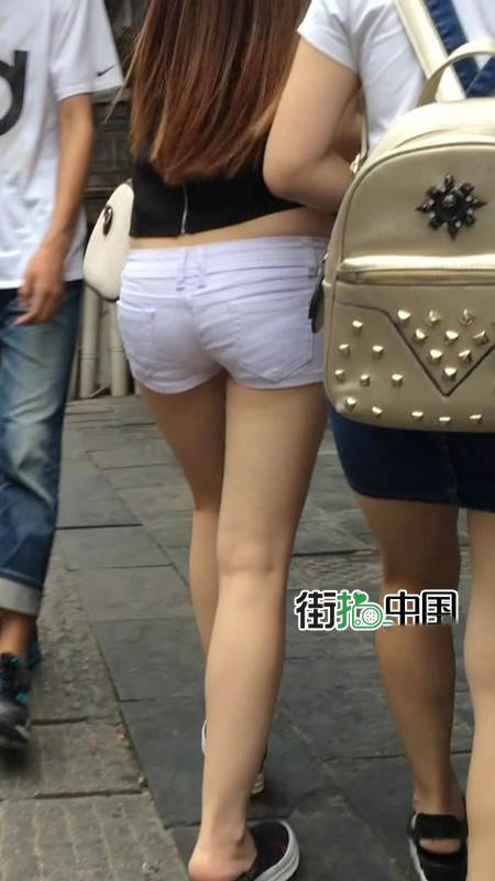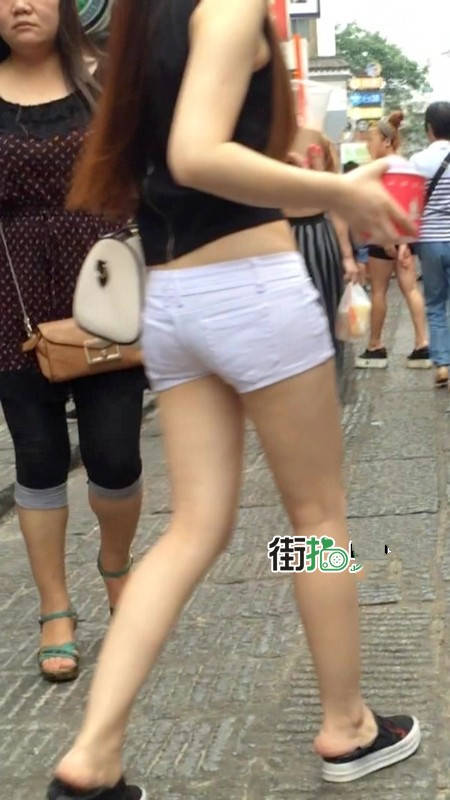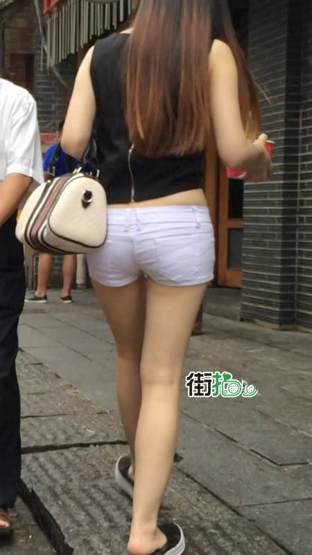 【编号1217】街拍白色紧身热裤长发苗条女同学