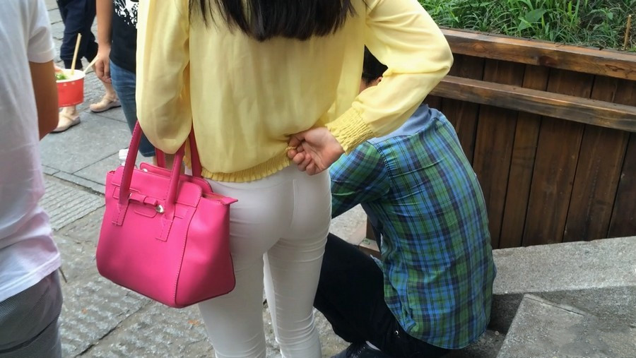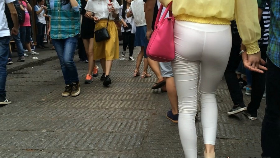 【编号557】10分钟巨制紧身白裤大屁股MM狼群中穿梭