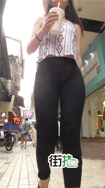 【编号729】街拍戴草帽的黑色紧身裤少妇