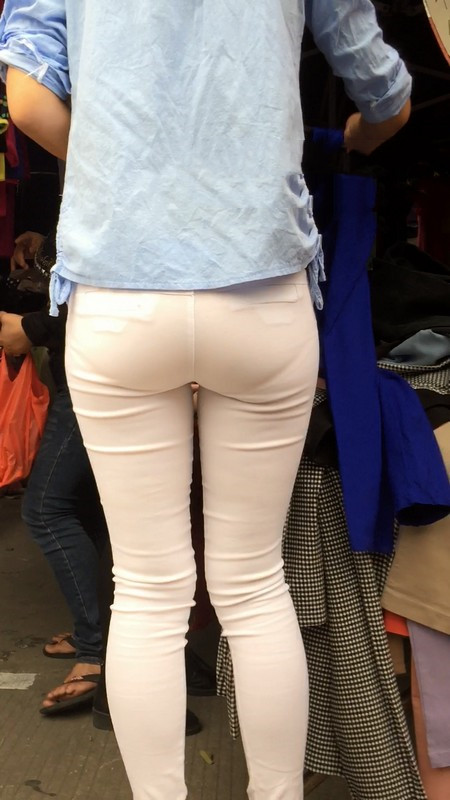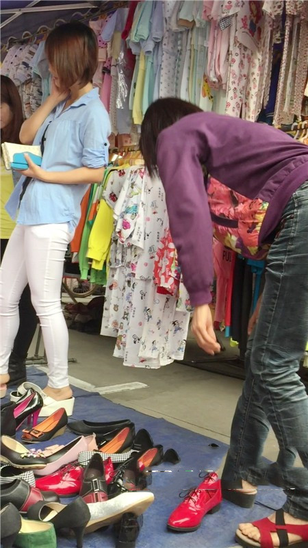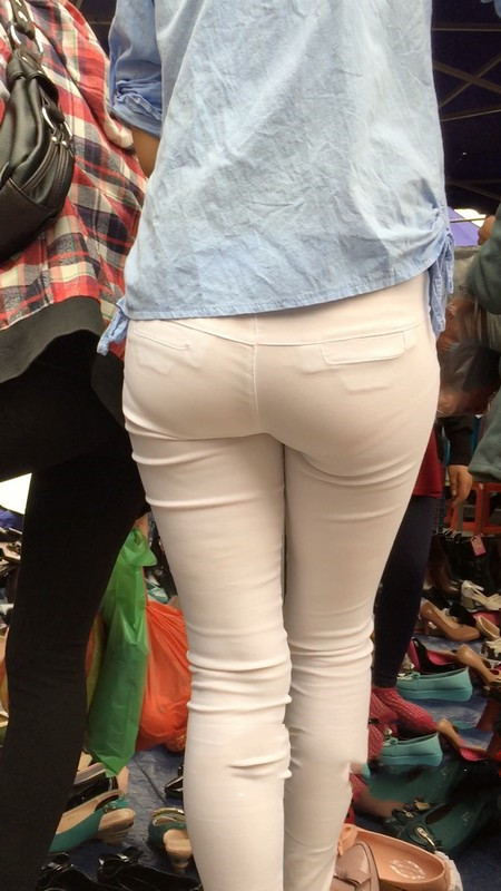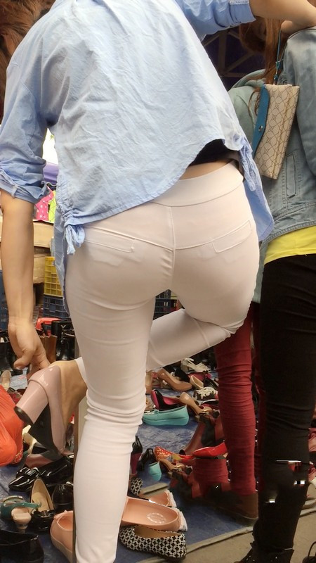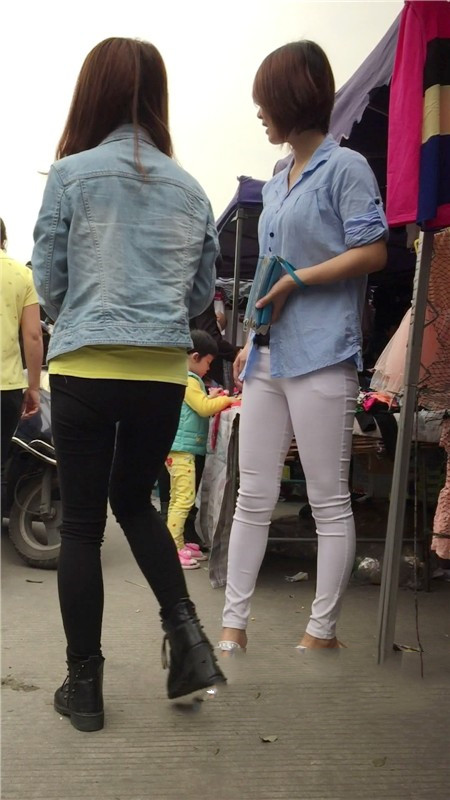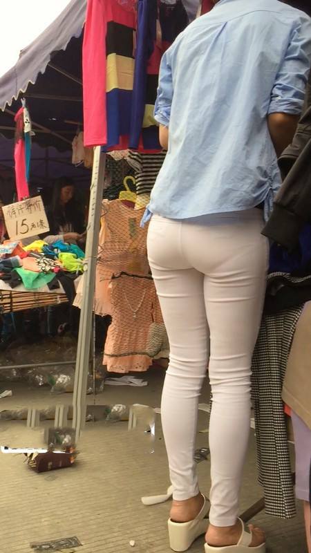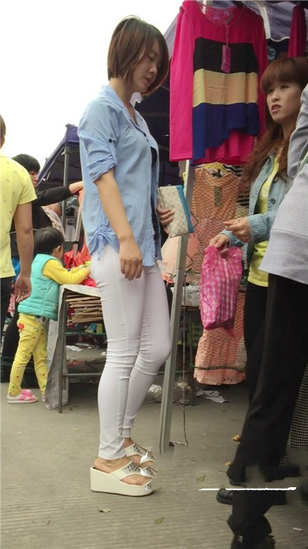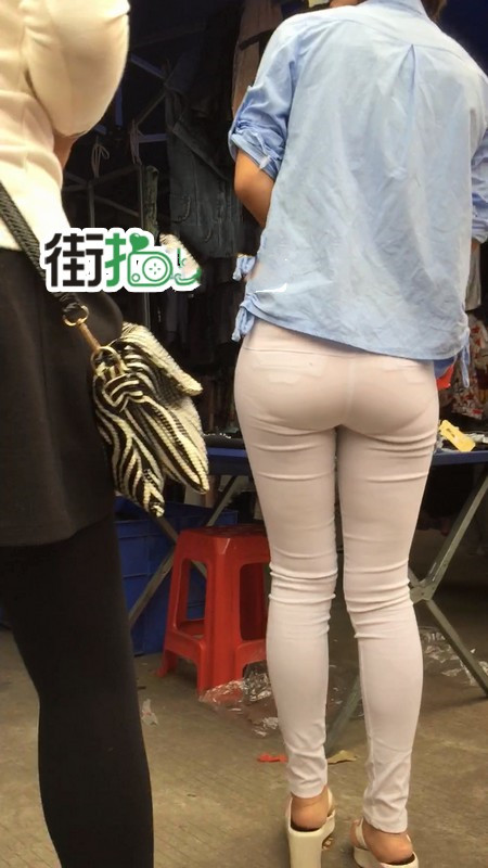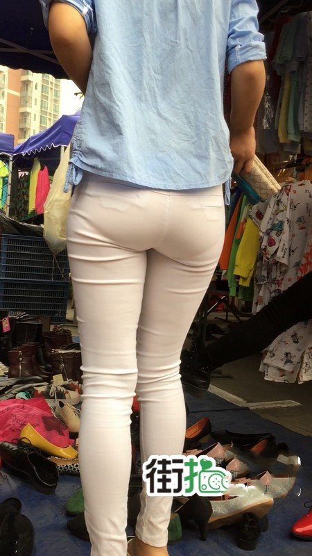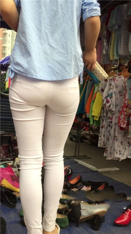 【编号767】街拍紧身白裤苗条女孩买鞋