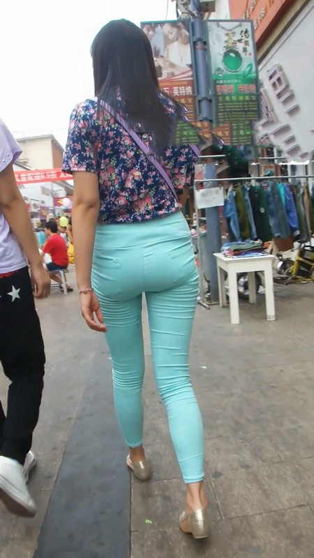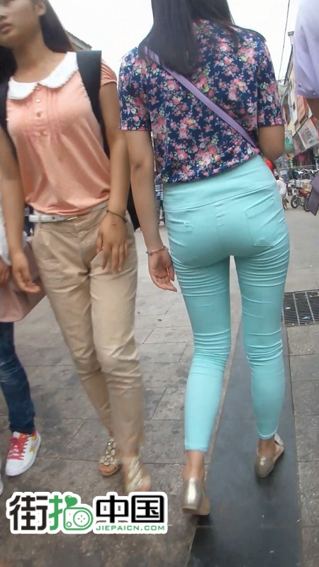【编号799】街拍紧身绿裤长腿翘臀学生妹