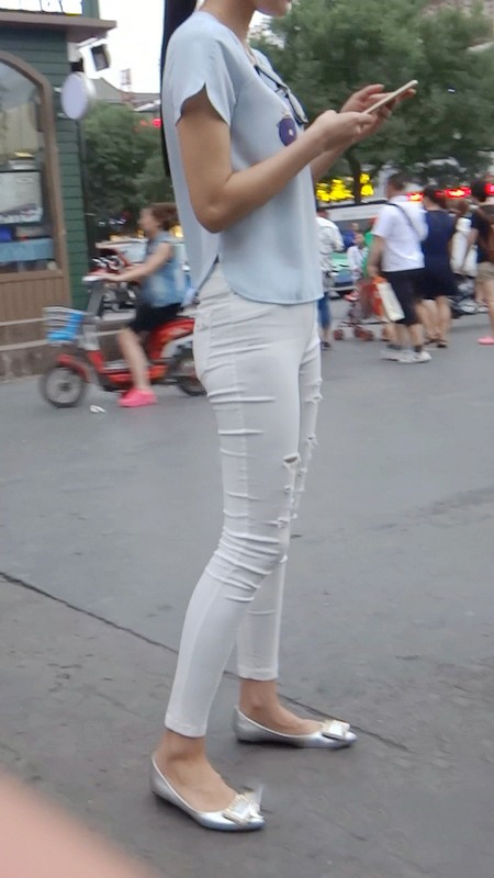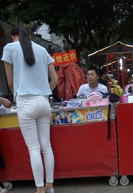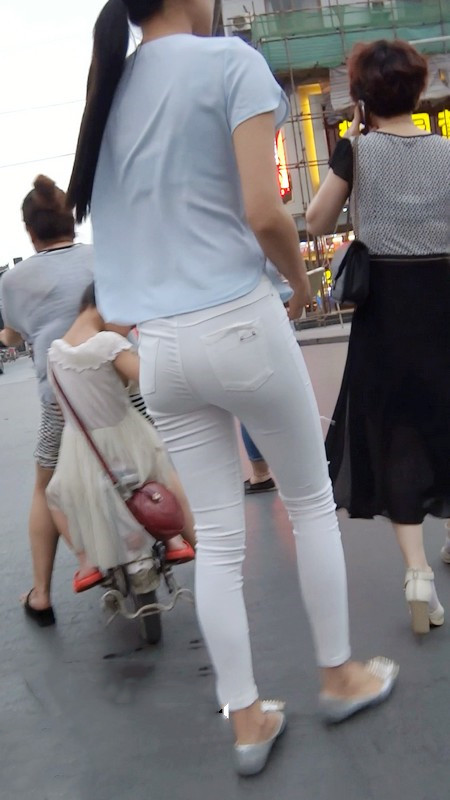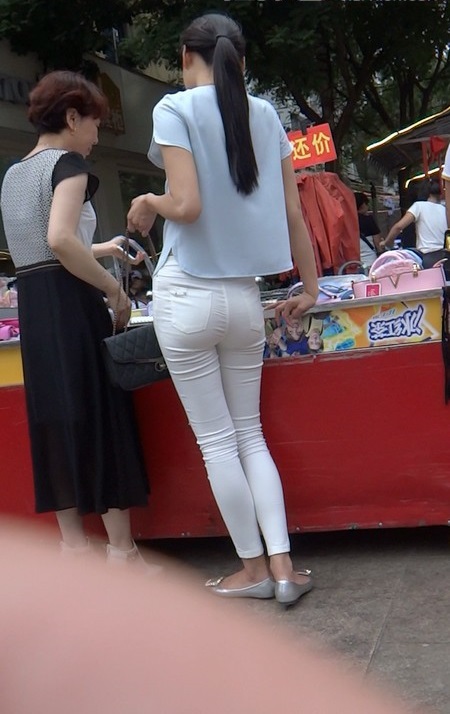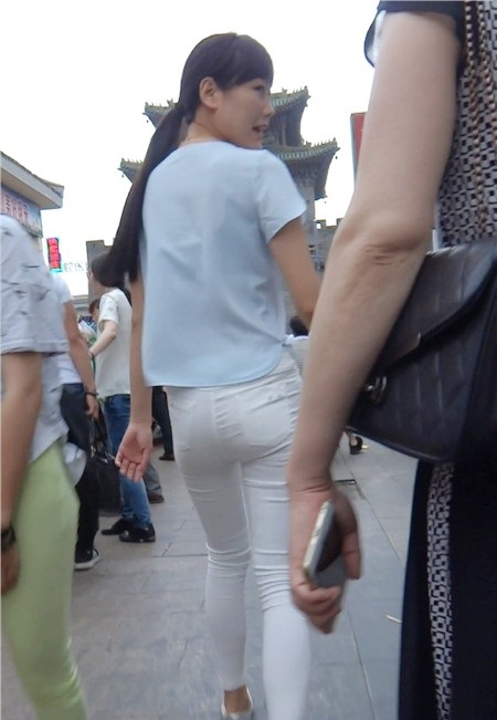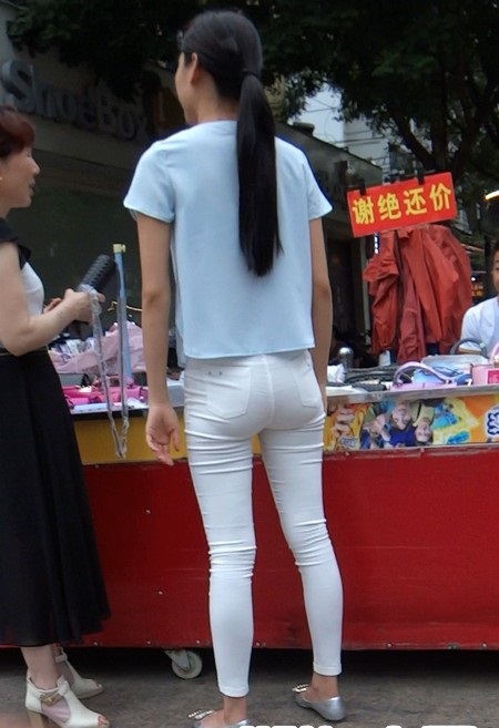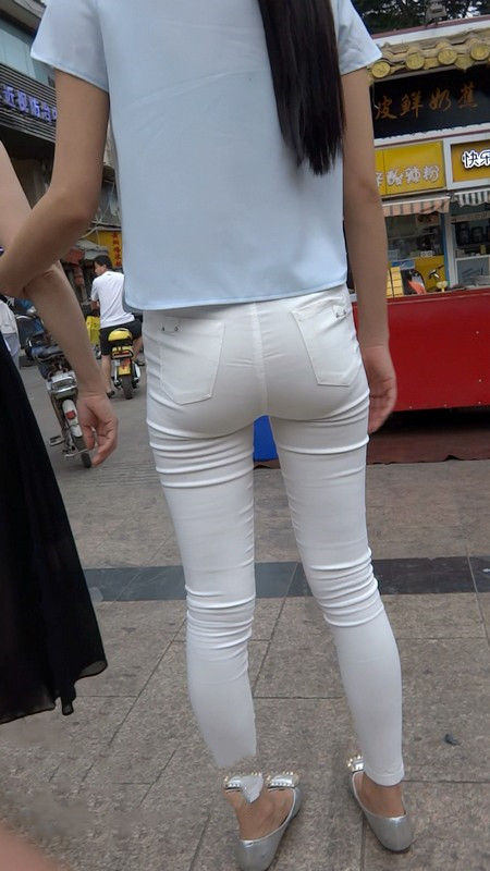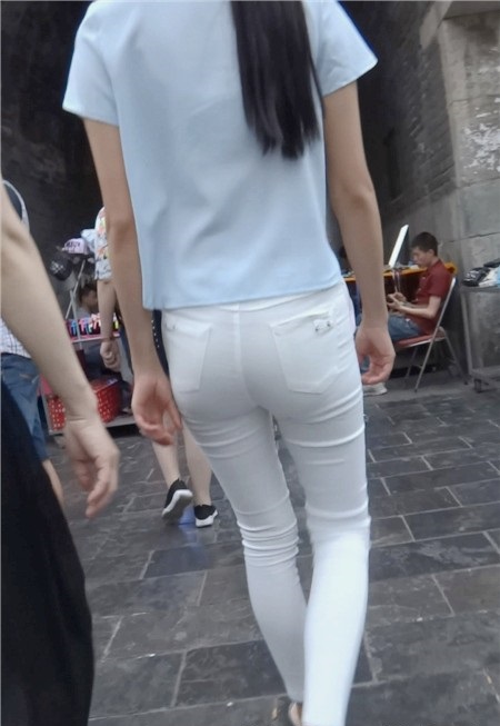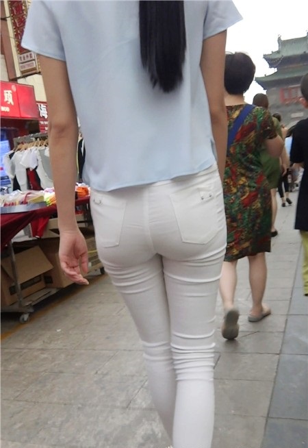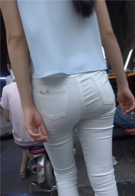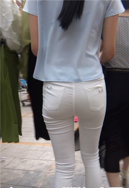 【编号804】街拍10分钟薄透紧身白裤的圆臀美眉