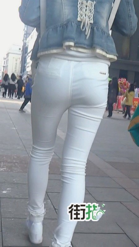 【编号810】街拍紧身白裤女学生和同学逛街