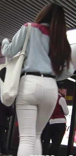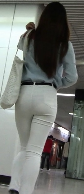 【编号823】街拍白色紧身裤妹妹在地铁迷路了