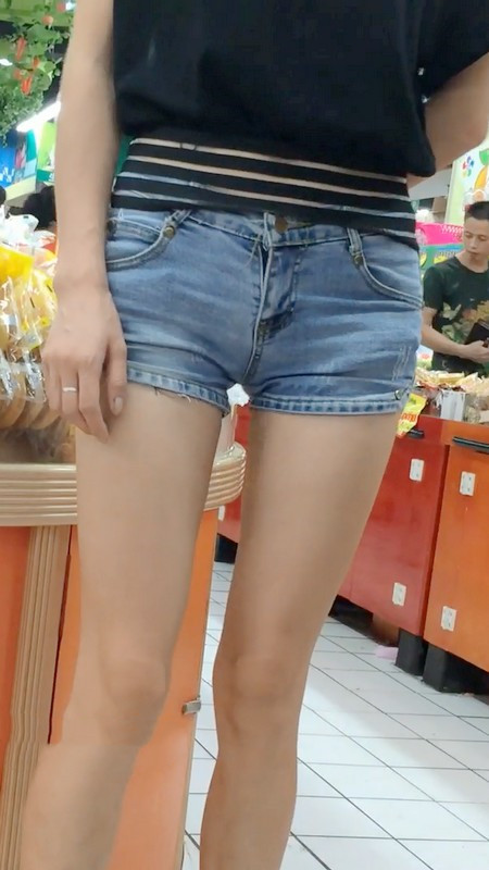 【编号888】街拍超极品完美紧牛长腿翘臀美女逛超市