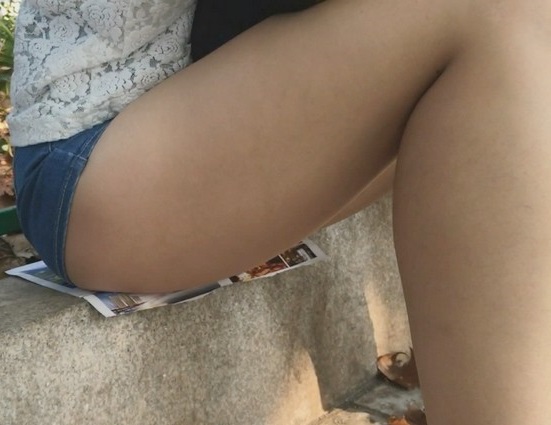 【编号905】街拍公园里的热裤美女小裤裤太紧了