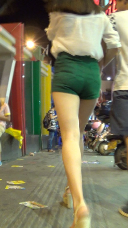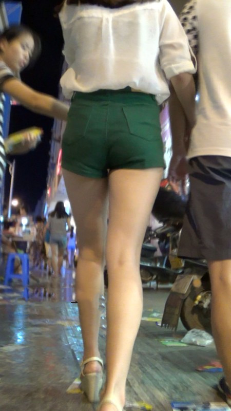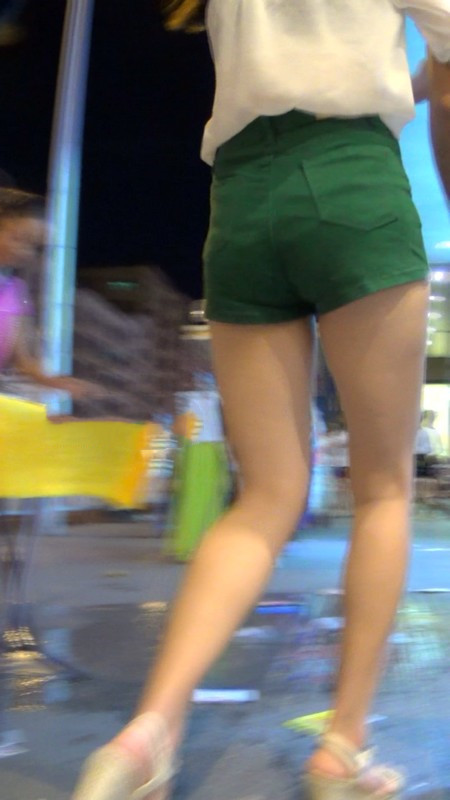 【编号937】街拍绿色短裤大长腿