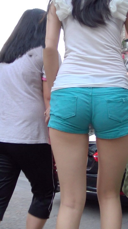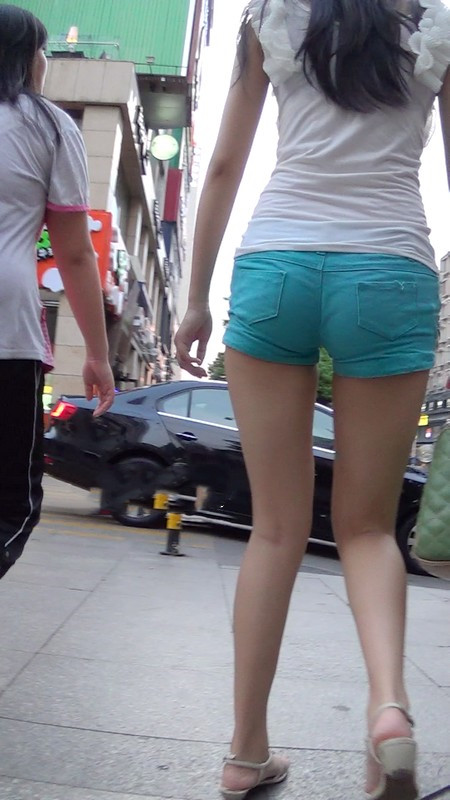 【编号989】街拍淡蓝色热裤少女好身材