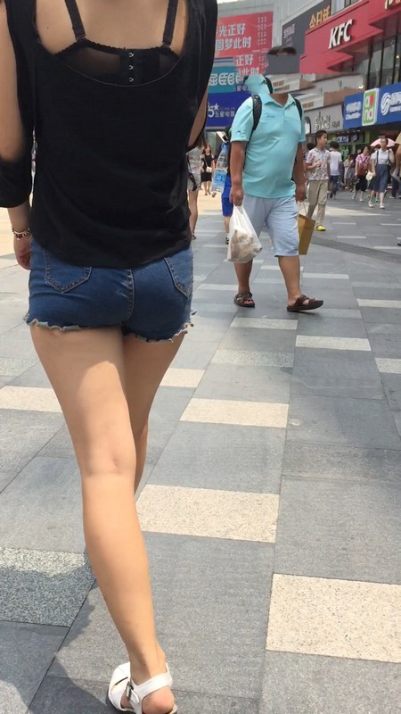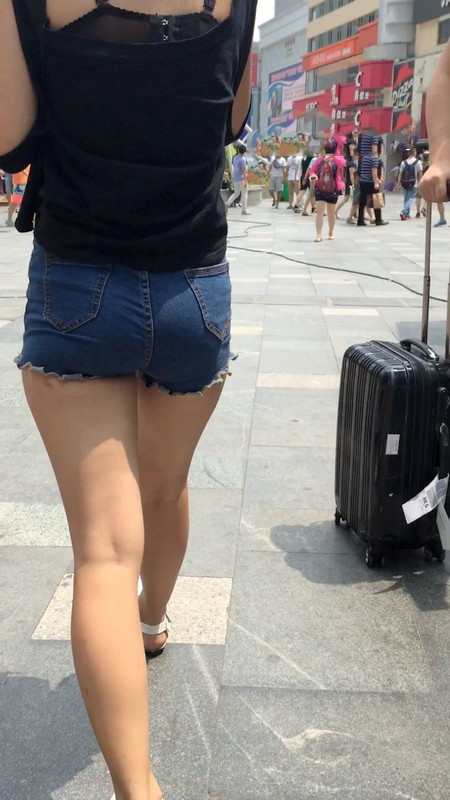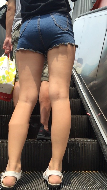 【编号1016】街拍牛仔紧身热裤妹妹上扶梯