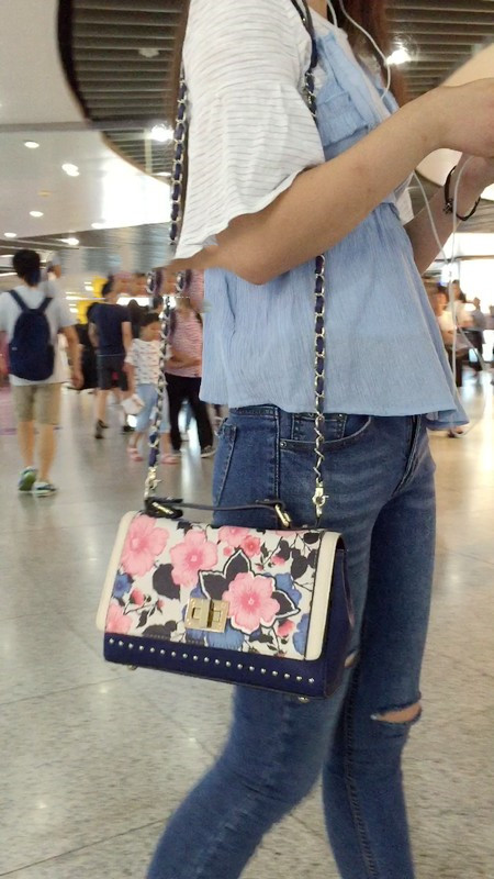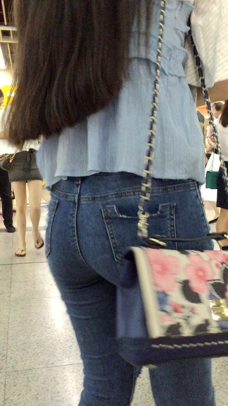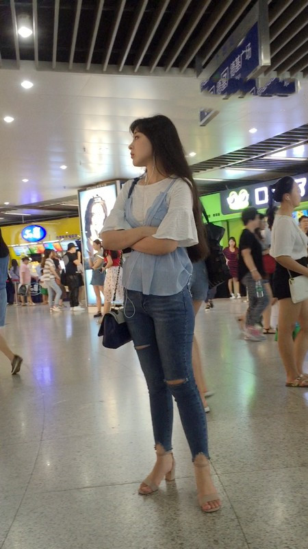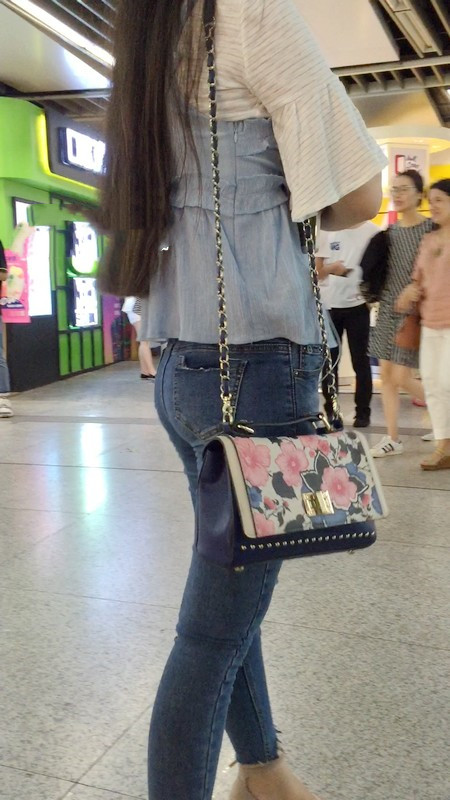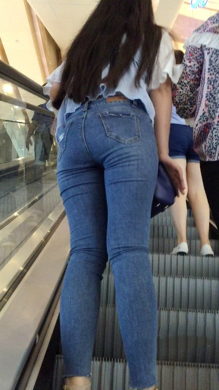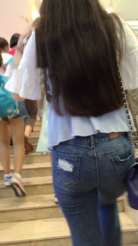【编号1028】街拍漂亮蓝牛妹上扶梯