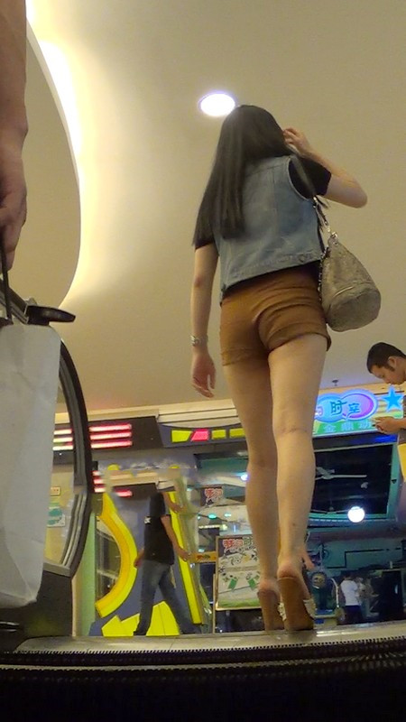 【编号1036】街拍仰视短裤长腿女孩乘商场扶梯
