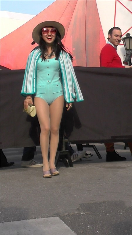 【编号1094】街拍超紧身连体衣女模特街边摆拍
