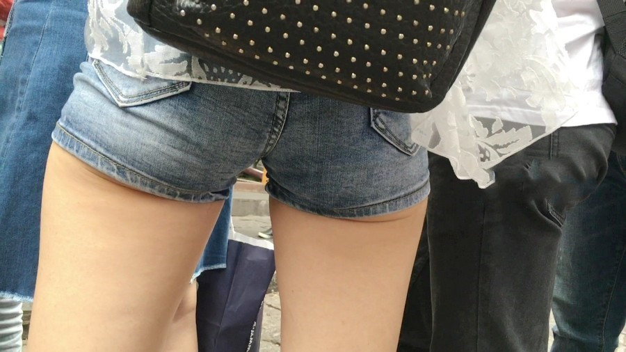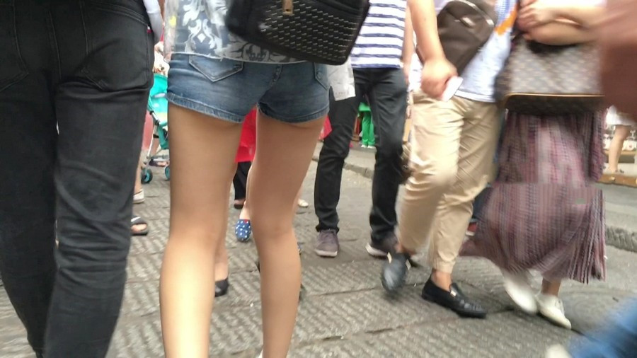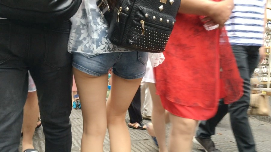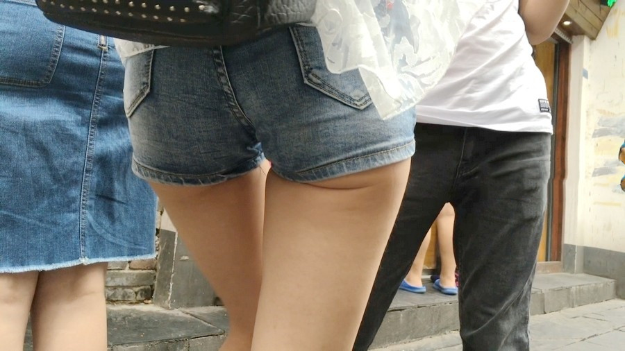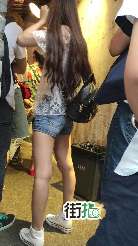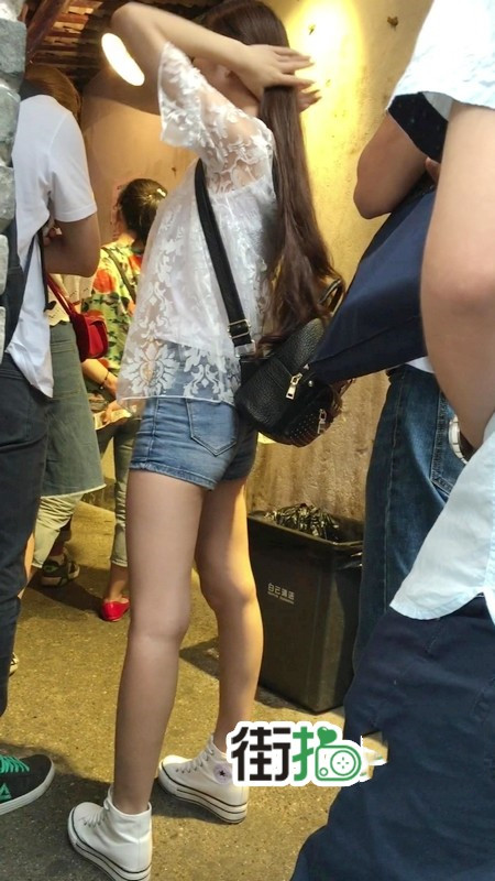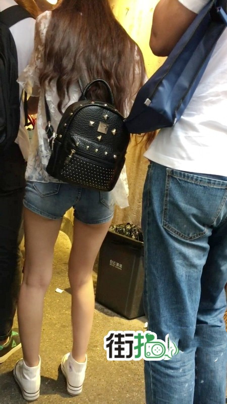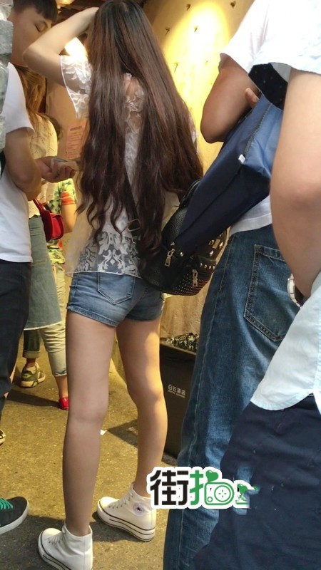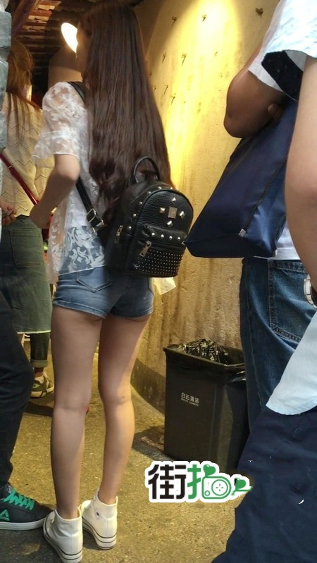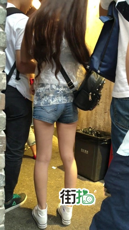 【编号1156】街拍超紧身牛仔热裤长腿学生妹