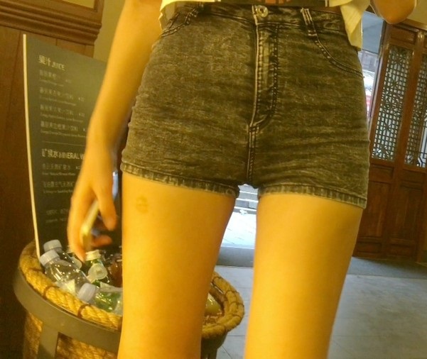 【编号1159】街拍紧身热裤长腿短发妹子