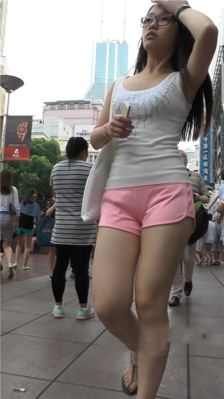 【编号1197】街拍红色短裤肥臀清凉眼镜妹