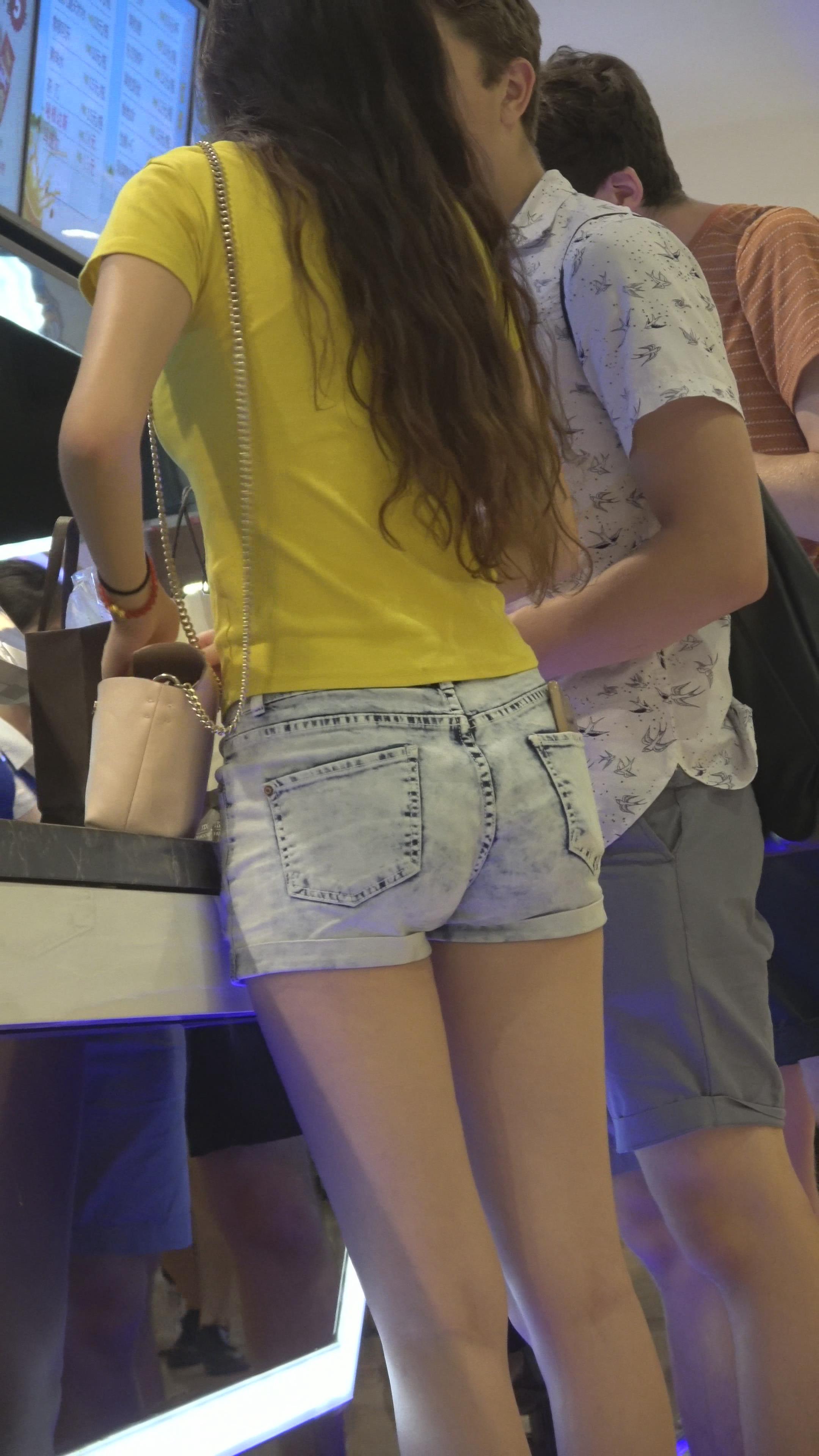 4K 黄色T恤街拍牛仔热裤小姐姐 编号3114