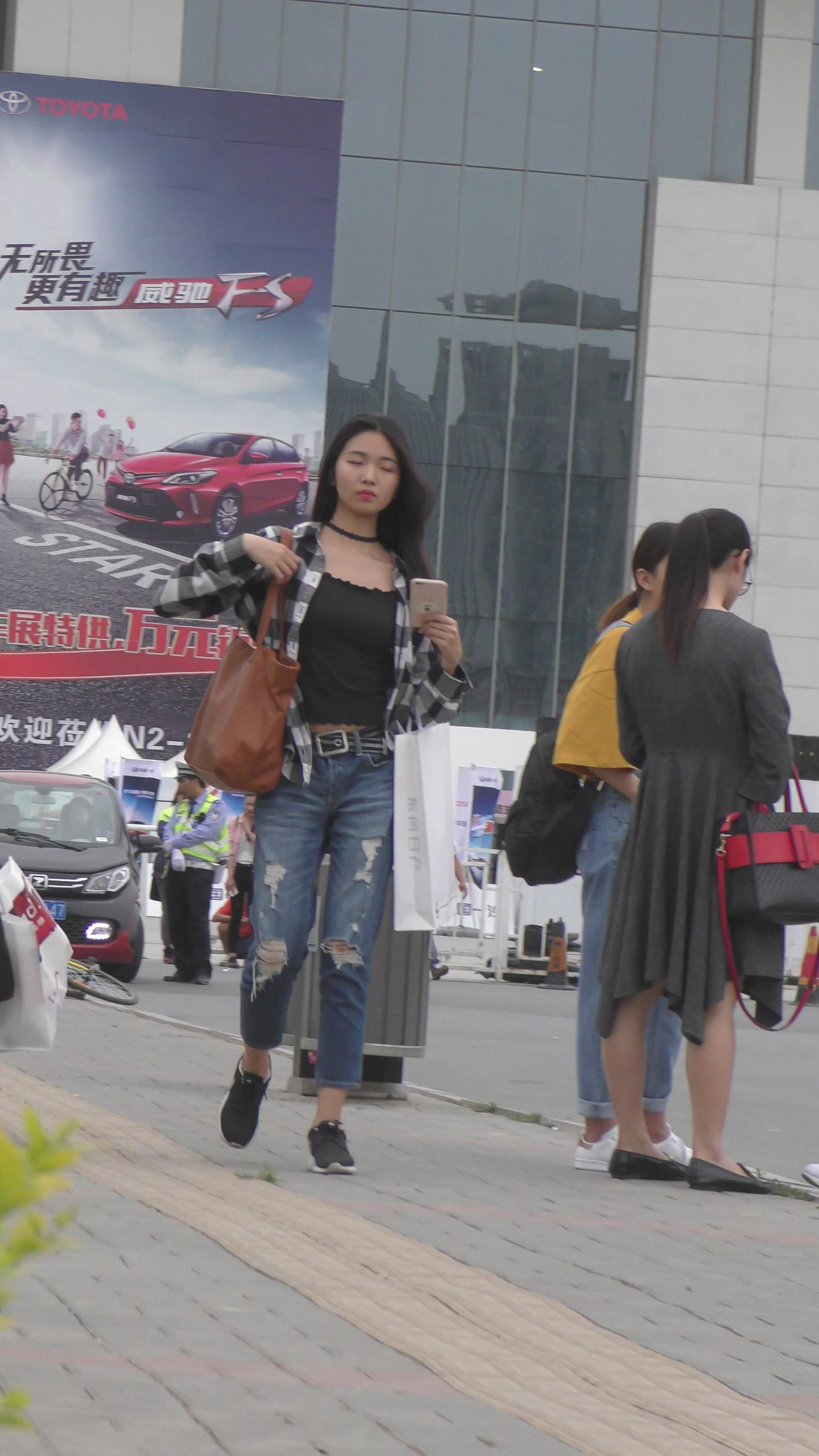 4K - 漂亮的破洞牛仔裤小姐姐风度翩翩 编号3115