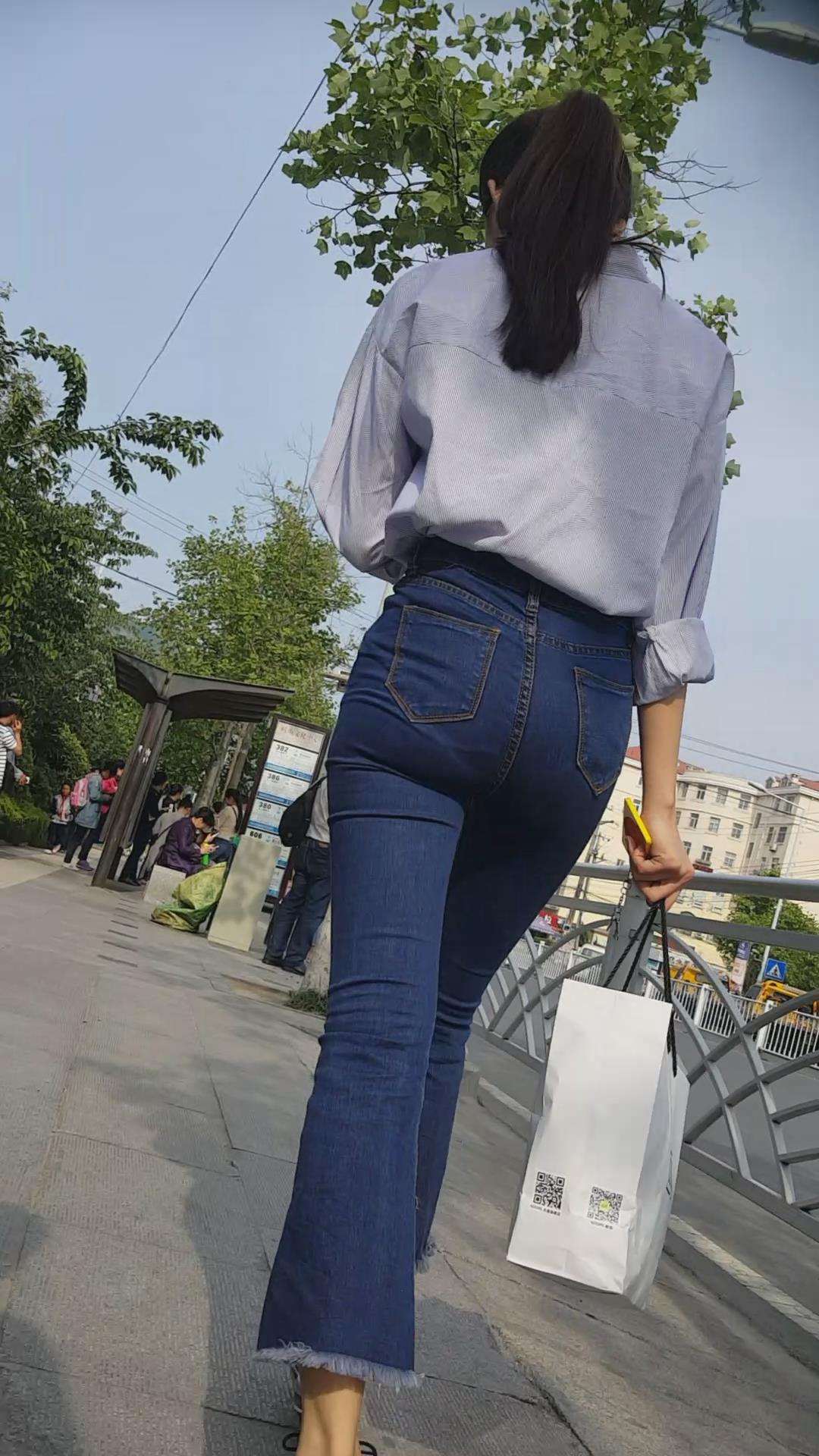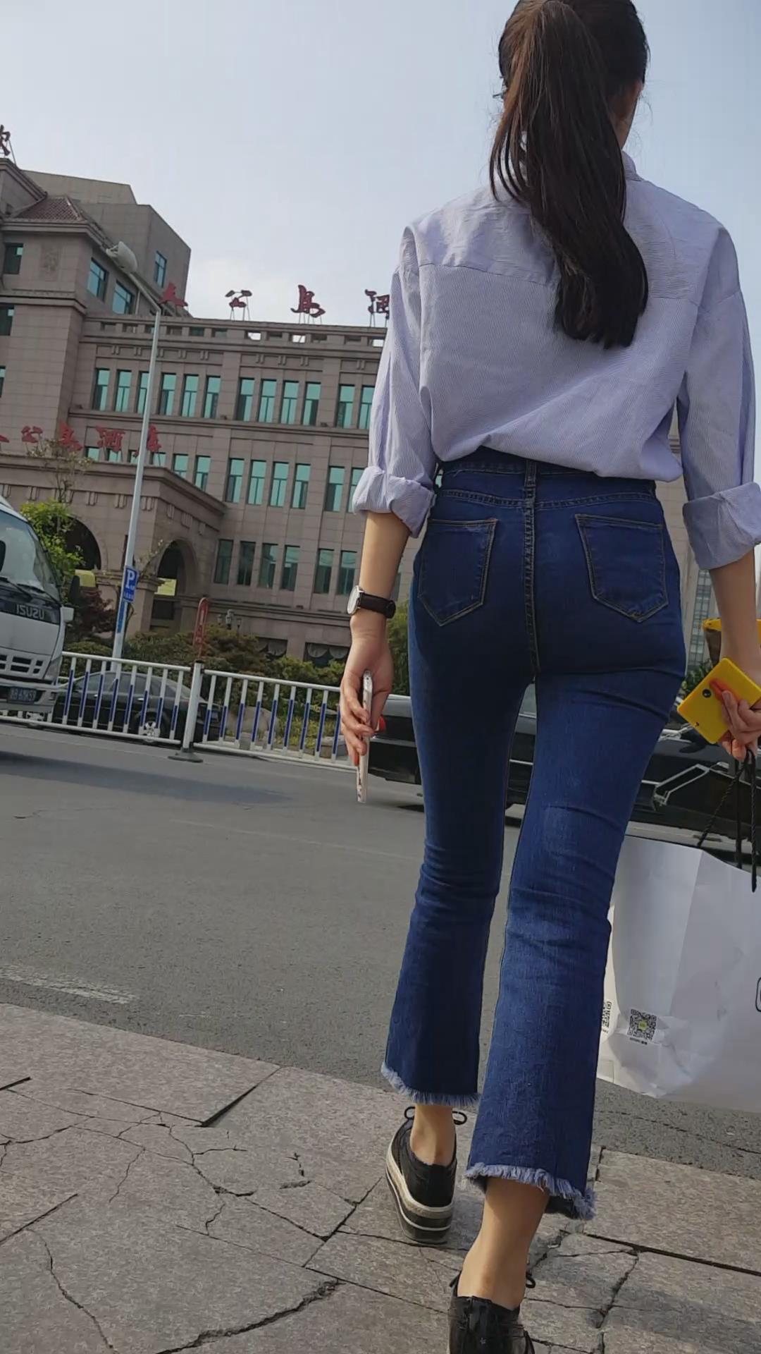 4k-紧身蓝牛清秀高颜值街拍美女 编号3118