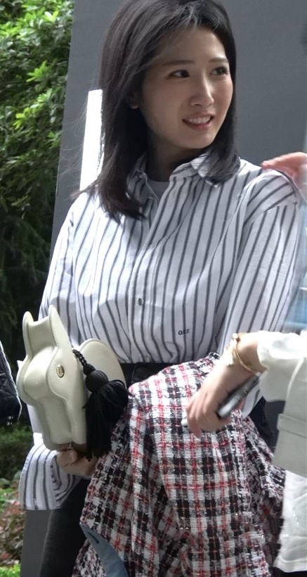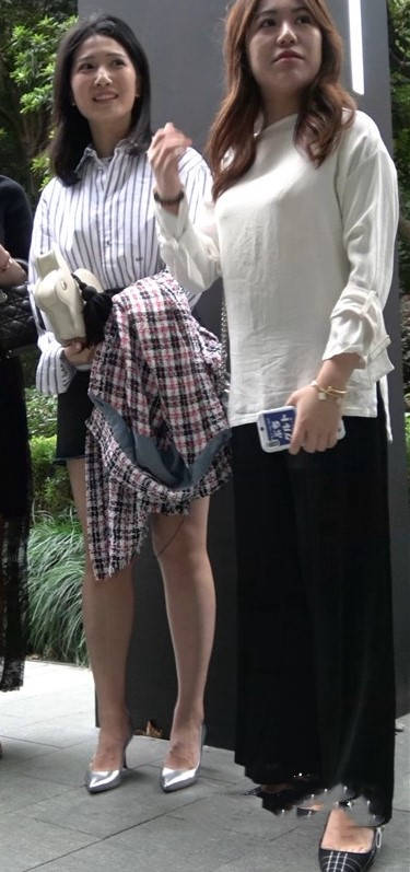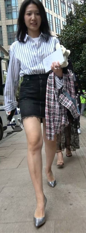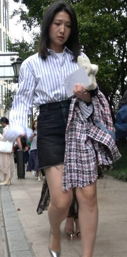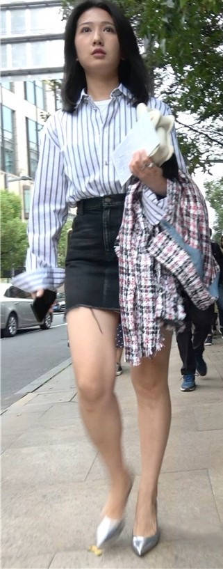 4K - 条纹衬衫短裙气质街拍高跟美女 编号9438 |