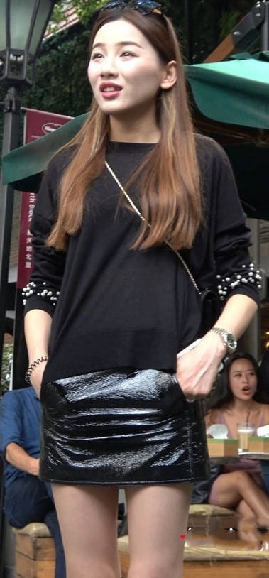 K 黑T恤小短裙性感街拍美腿美女 编号9440 |