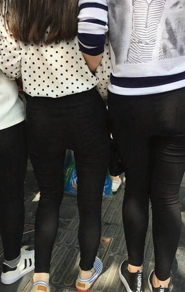 三个黑色紧身裤MM子走在一起 编号9299 |
