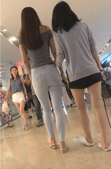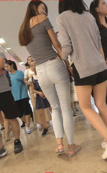 4K-商场浅灰紧身牛仔裤圆润翘臀长发美女 编号9311 |