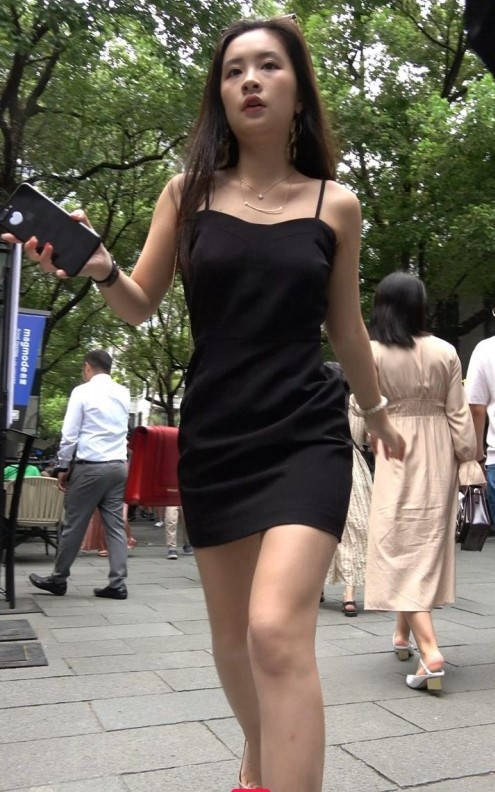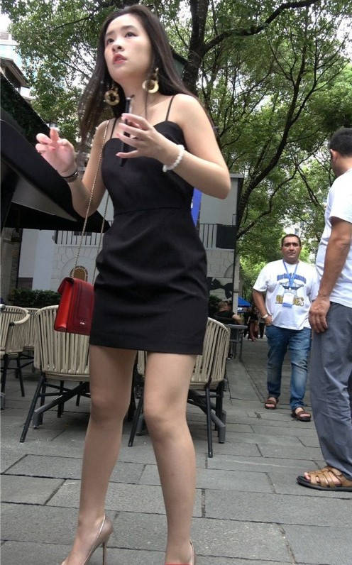 4K-性感黑色包屯裙长腿街拍高跟美女 编号9364 |