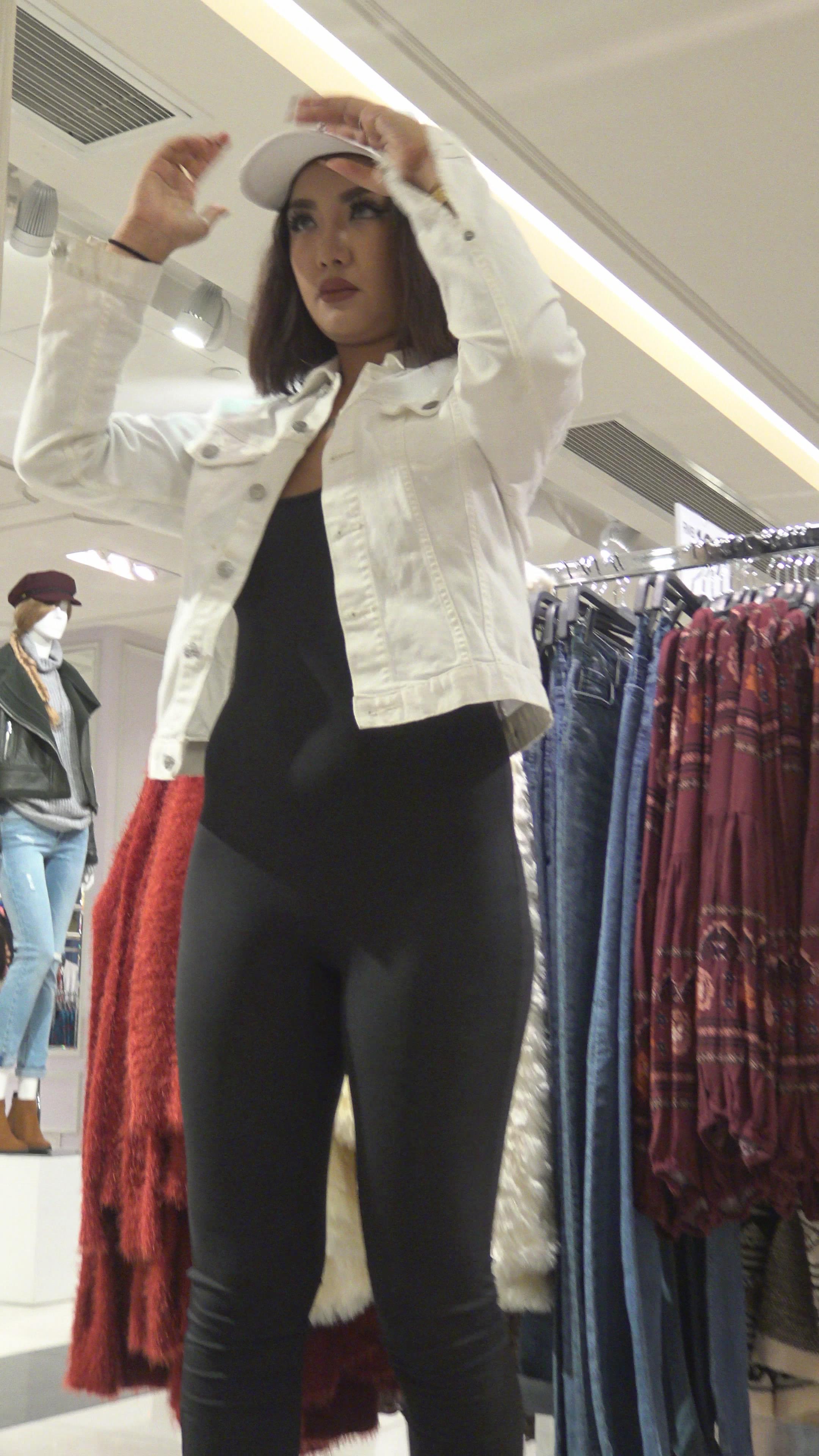 4K - 街拍黑色紧身裤美女试衣服 编号3189 |
