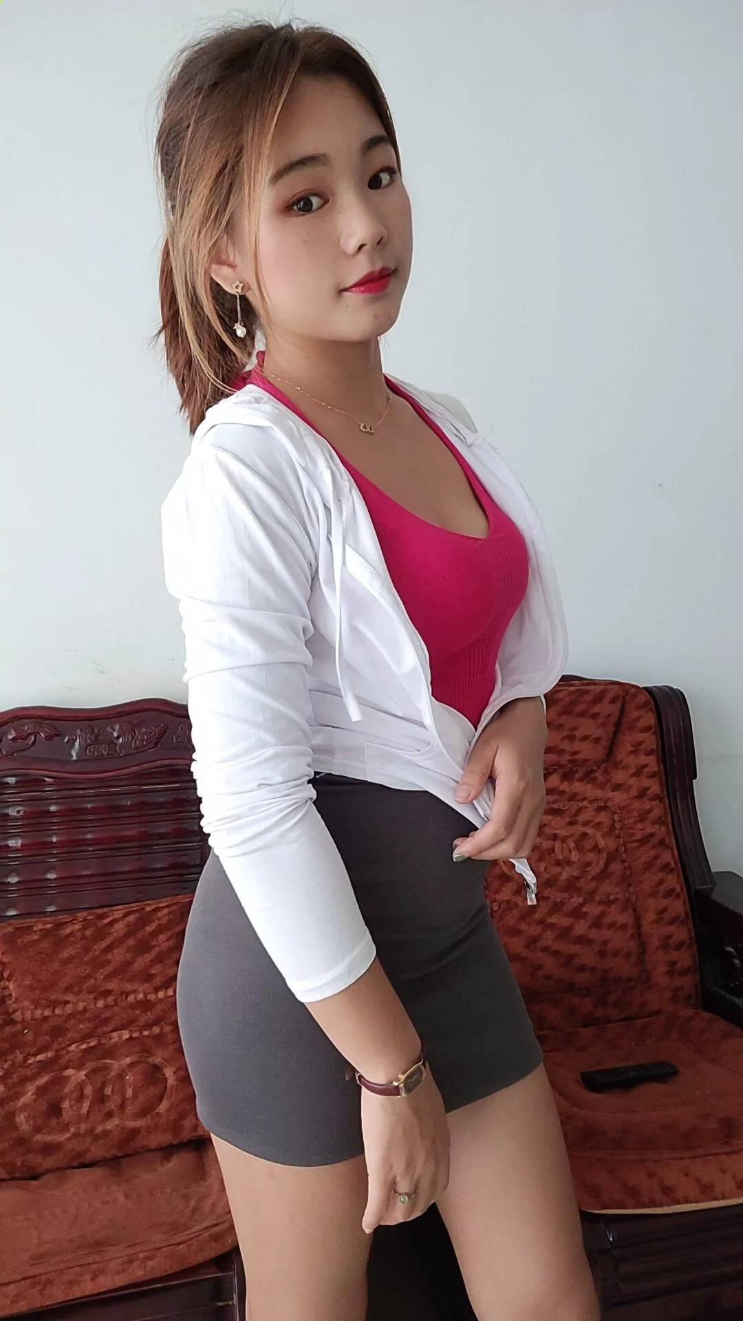 蓝白紧身热裤高跟性感美腿漂亮丰满美女车模SN136 |