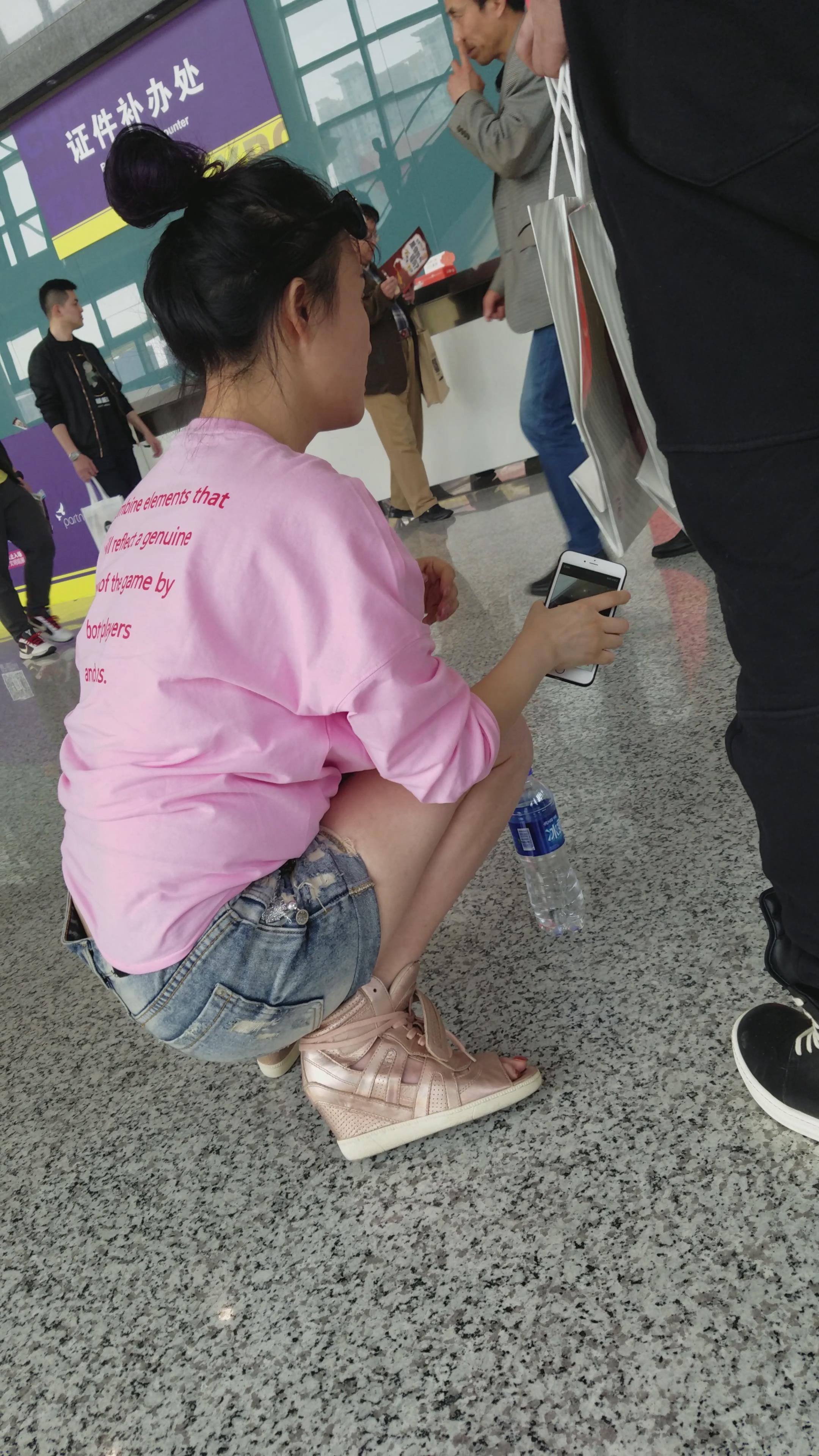 4k-粉色T恤衫牛仔热裤白皙美腿姐姐 编号3264 |