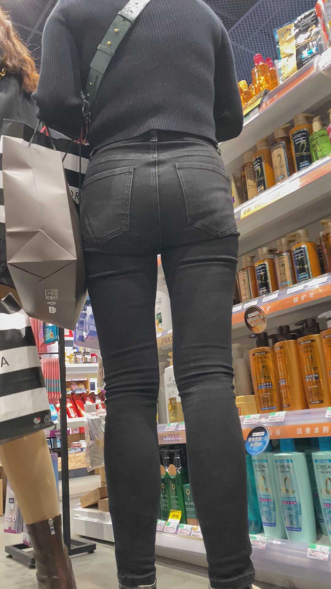 B1005商场翘大宽臀紧内痕黑裤少女 |