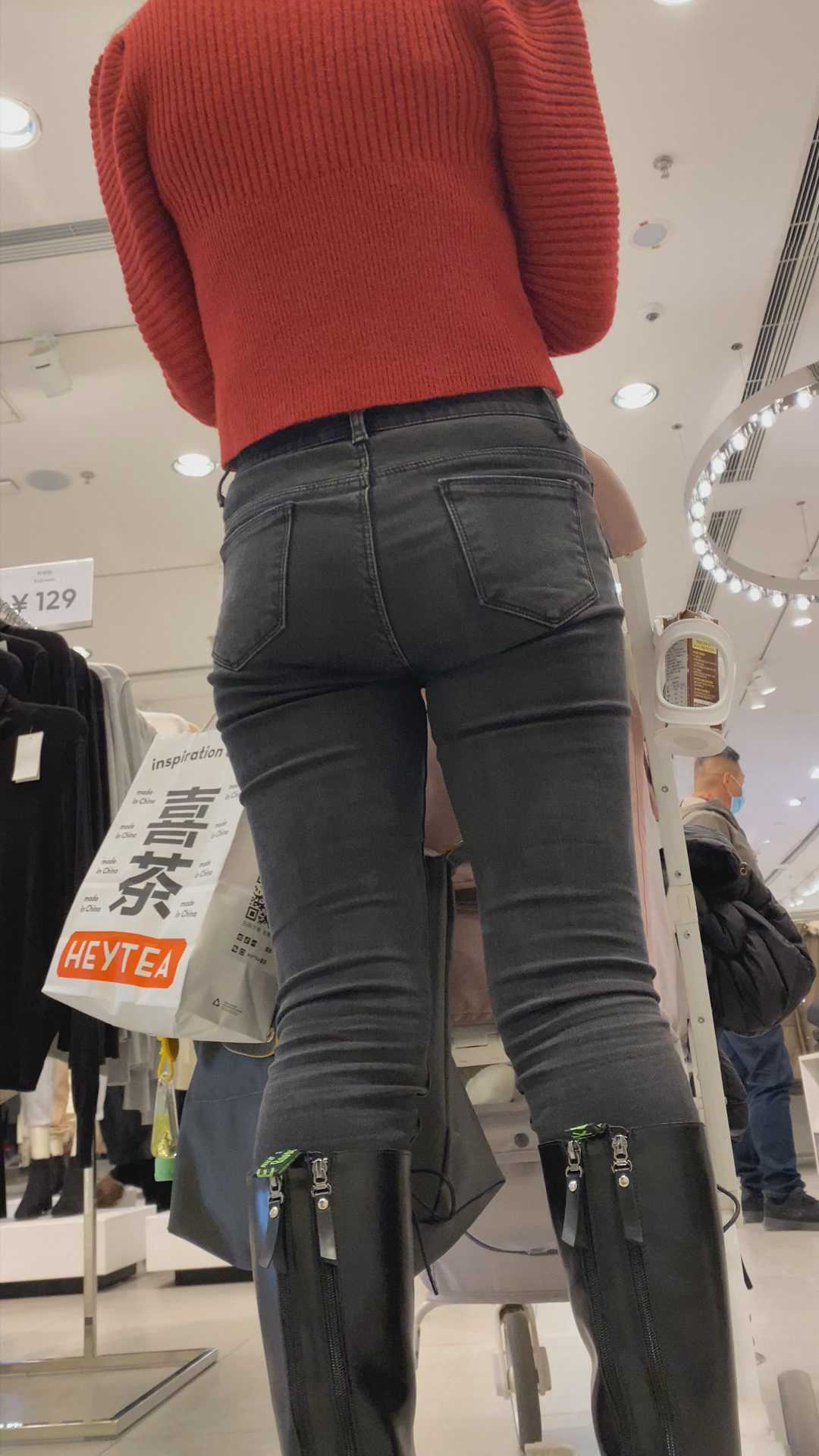 B1310紧身黑牛仔紧臀妹子买衣服 |