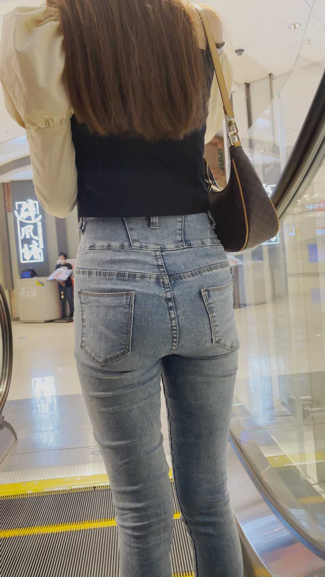 B1398饱满圆润翘臀牛仔裤长发妹子 |