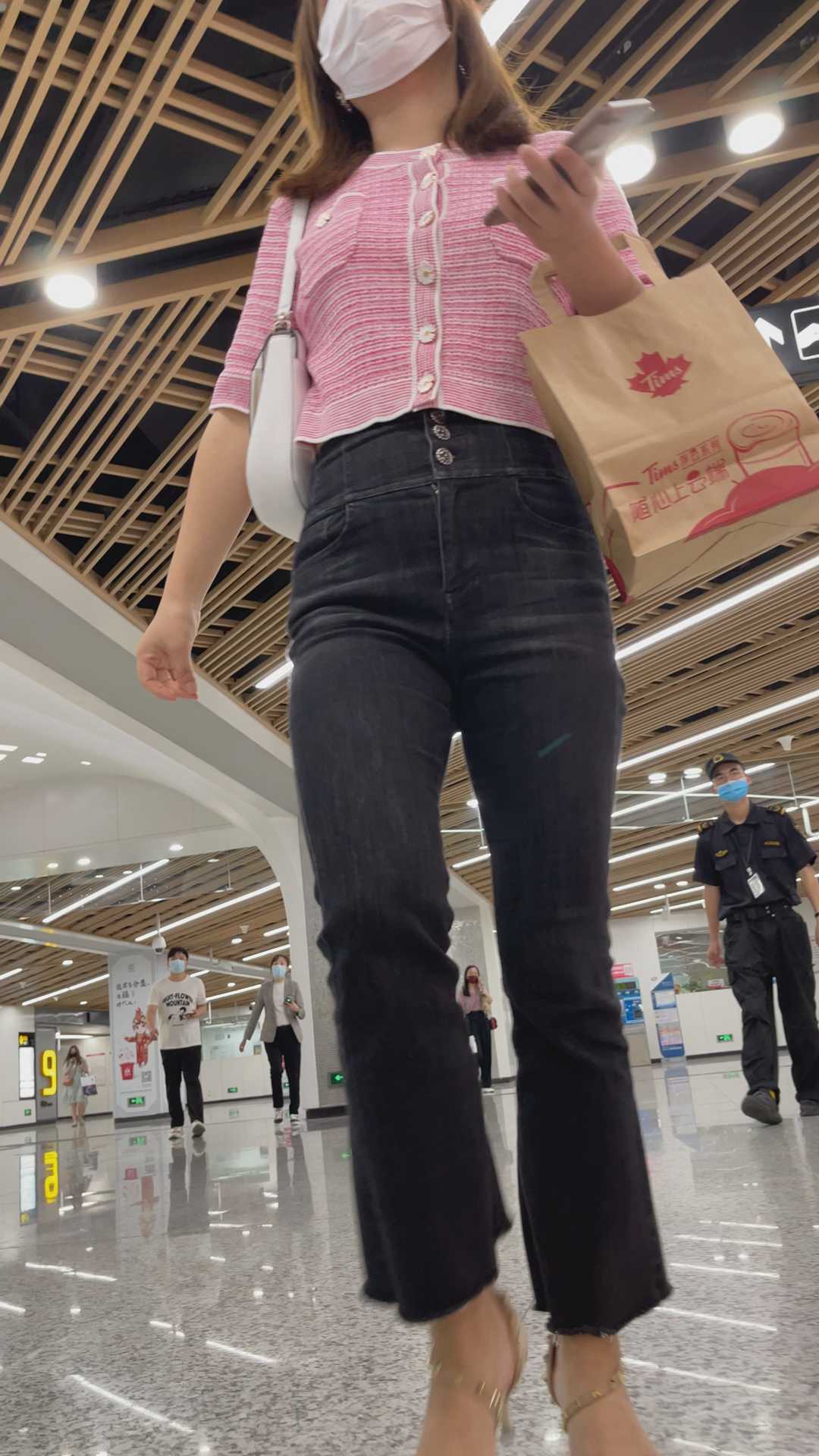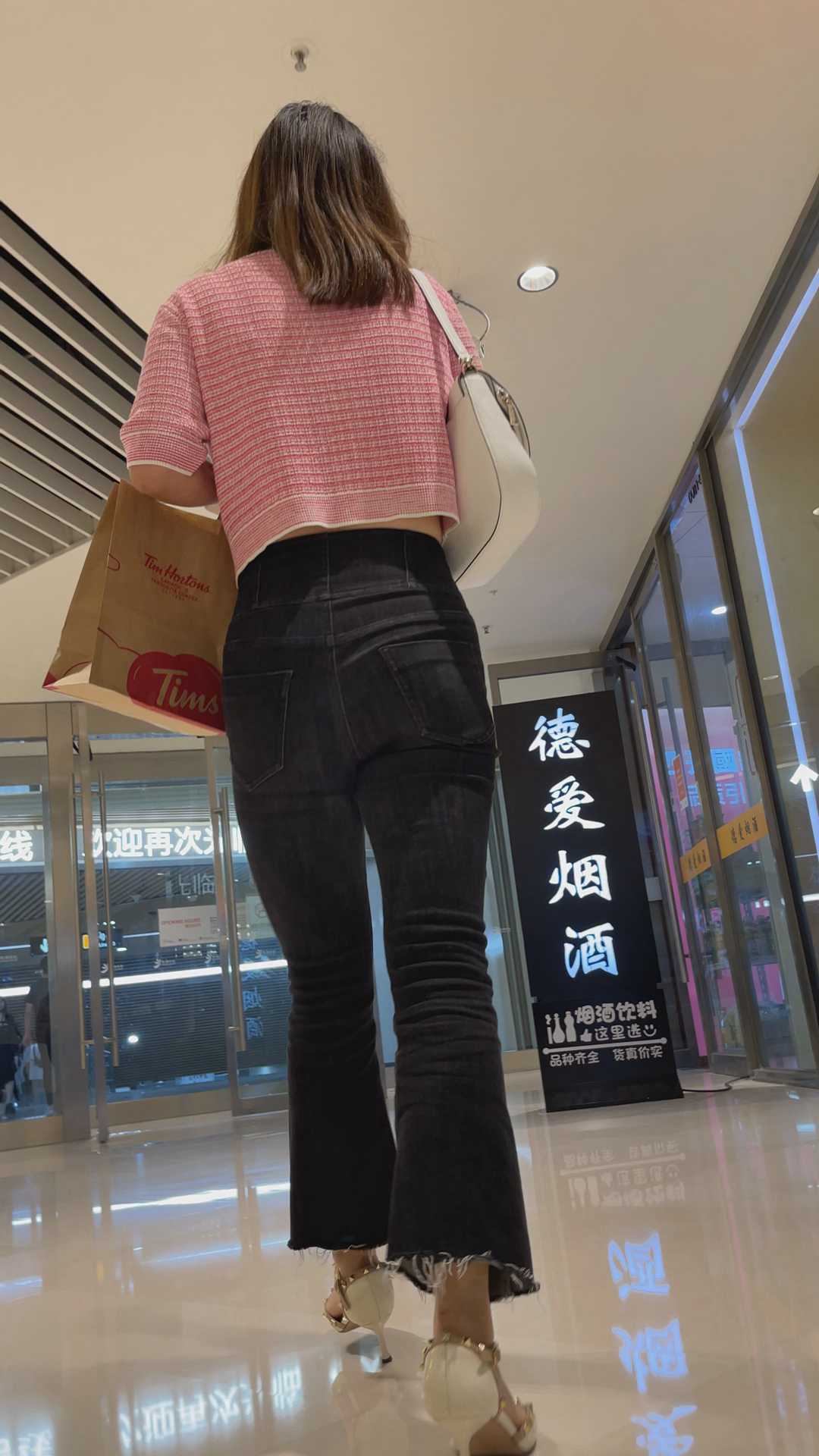 B193商场紧身黑牛仔喇叭裤妹子 |